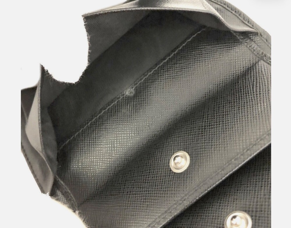 The Vintage PRADA Logo Plate Nylon Trifold Wallet in Black is a stylish accessory designed for women. Made of high-quality nylon material, this wallet features the iconic PRADA logo plate for a touch of luxury. With a trifold design, it provides practicality and organization for storing cards, cash, and other essentials. Perfect for adding a sophisticated touch to any outfit, this wallet is a timeless piece