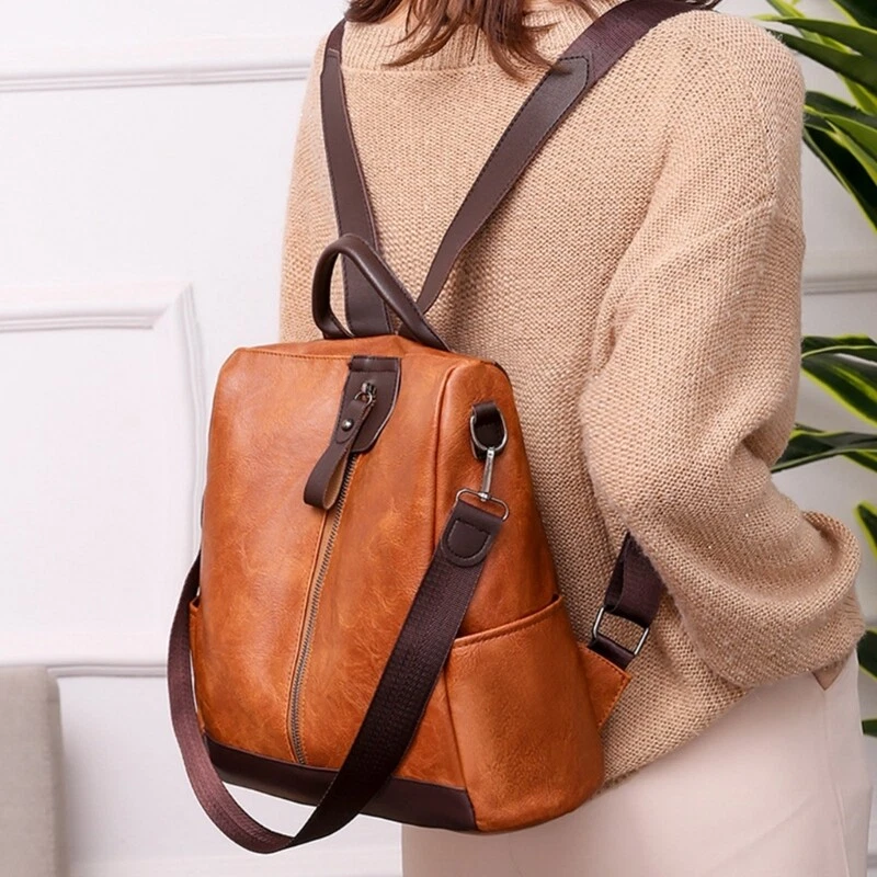 This backpack is a stylish and practical choice for school or travel! The vintage PU leather looks sleek, and the anti-theft pocket keeps valuables safe. Lightweight yet spacious, it fits all my essentials comfortably. The adjustable straps make it easy to carry, and the quality feels durable. Perfect for daily use or gifting—love it!