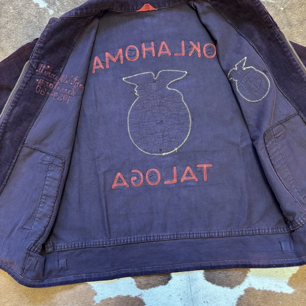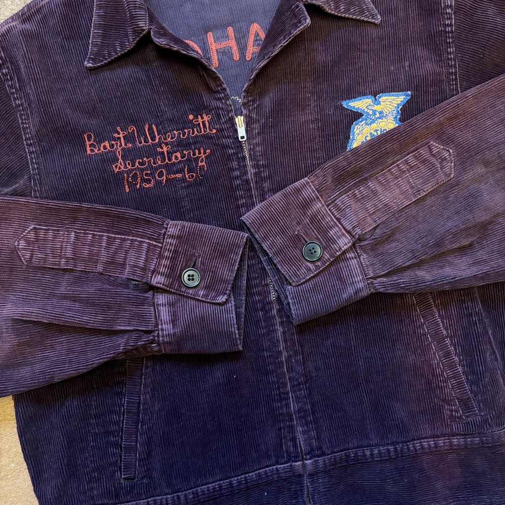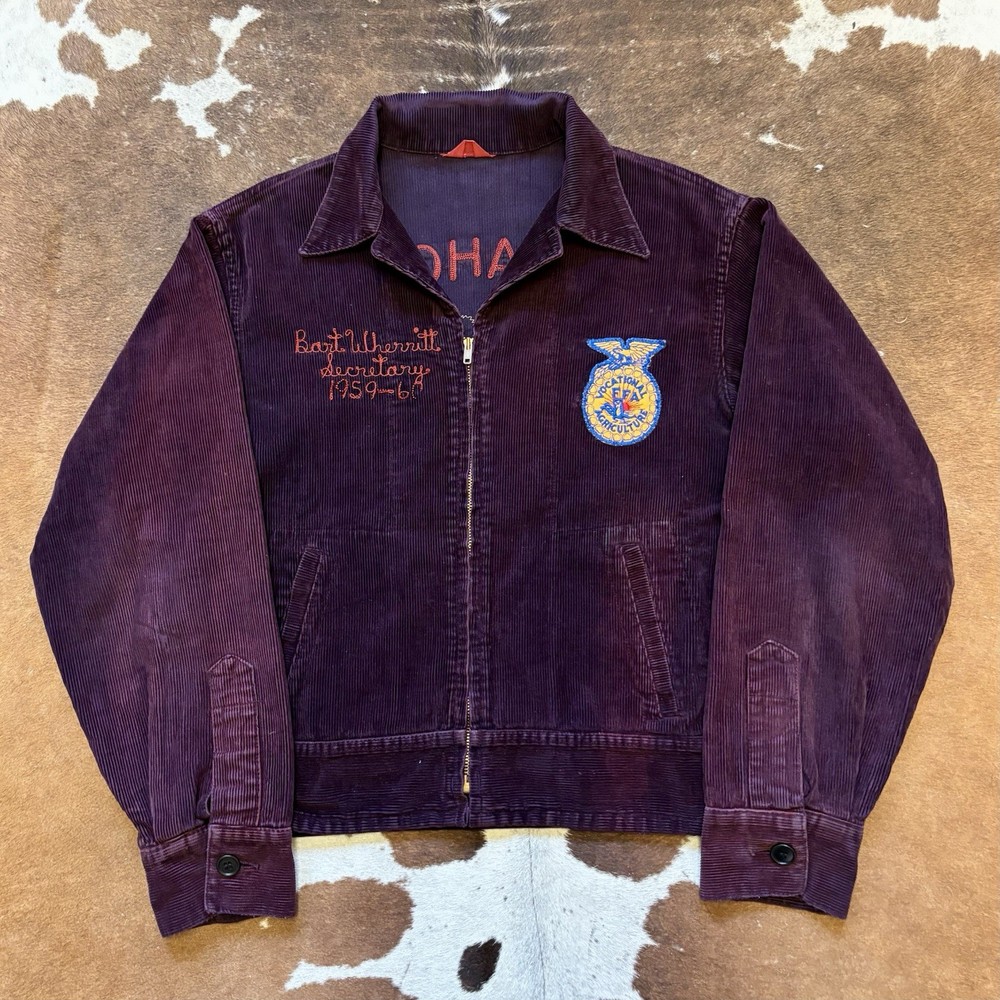 Beautiful and one of a kind purple ffa jacket with red chain stitching from the 50s. See pictures for condition. Message with any questions. Measures 23x23.5