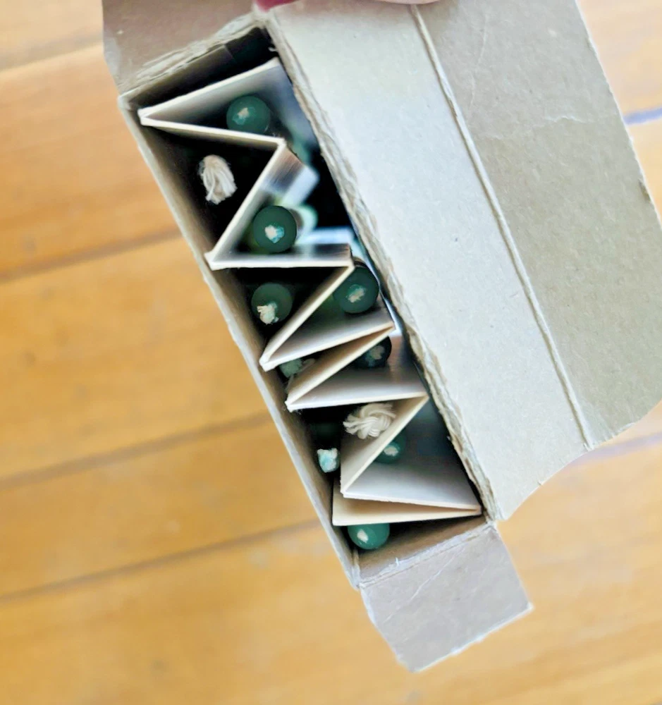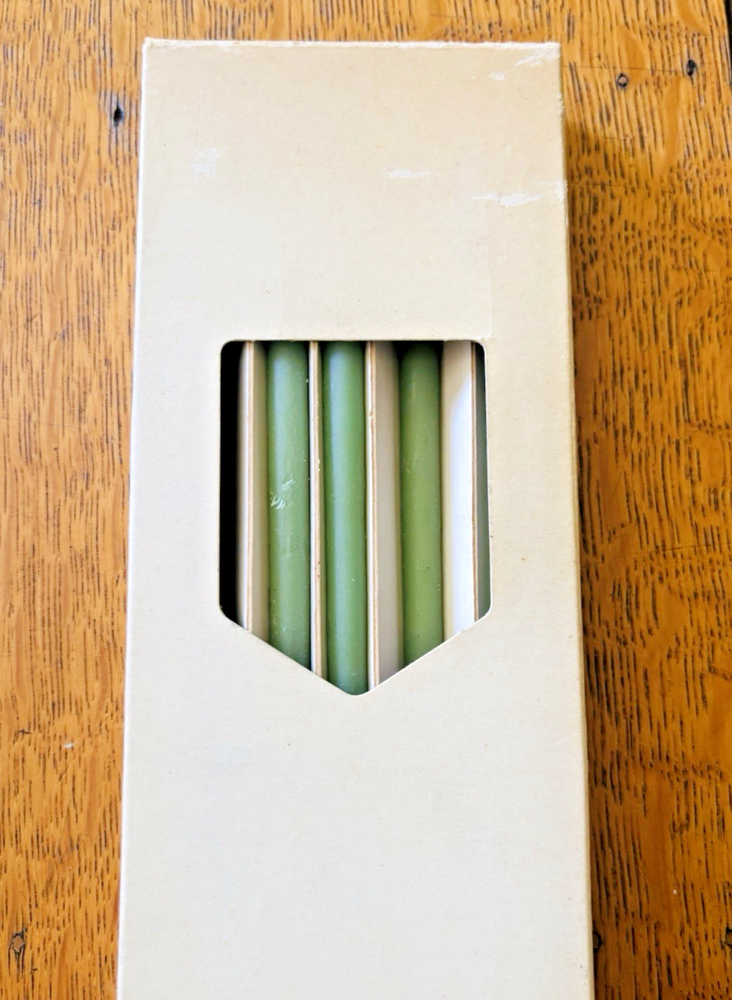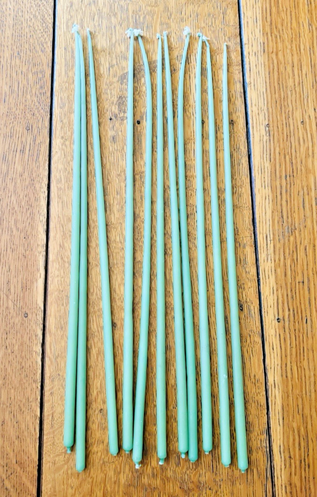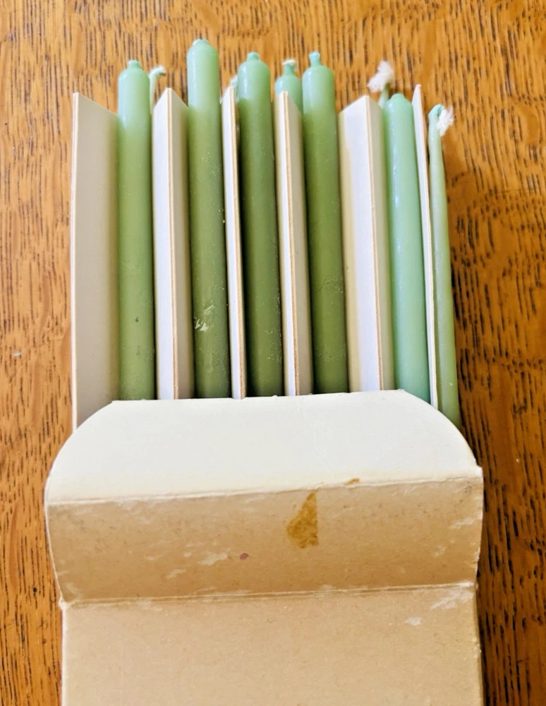 Vintage Pale Green Flower Taper Candles 15 Inch NIB Set of 11 Unused Skinny Dripless Turquoise