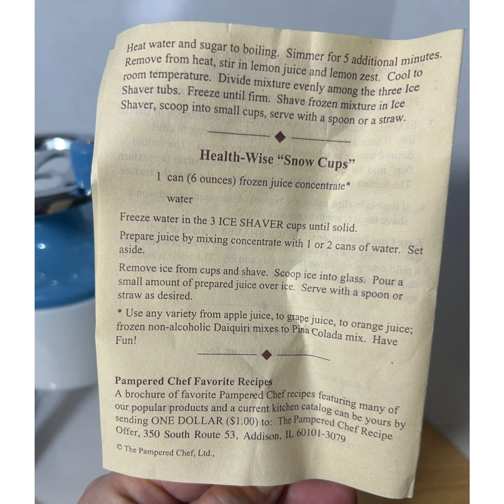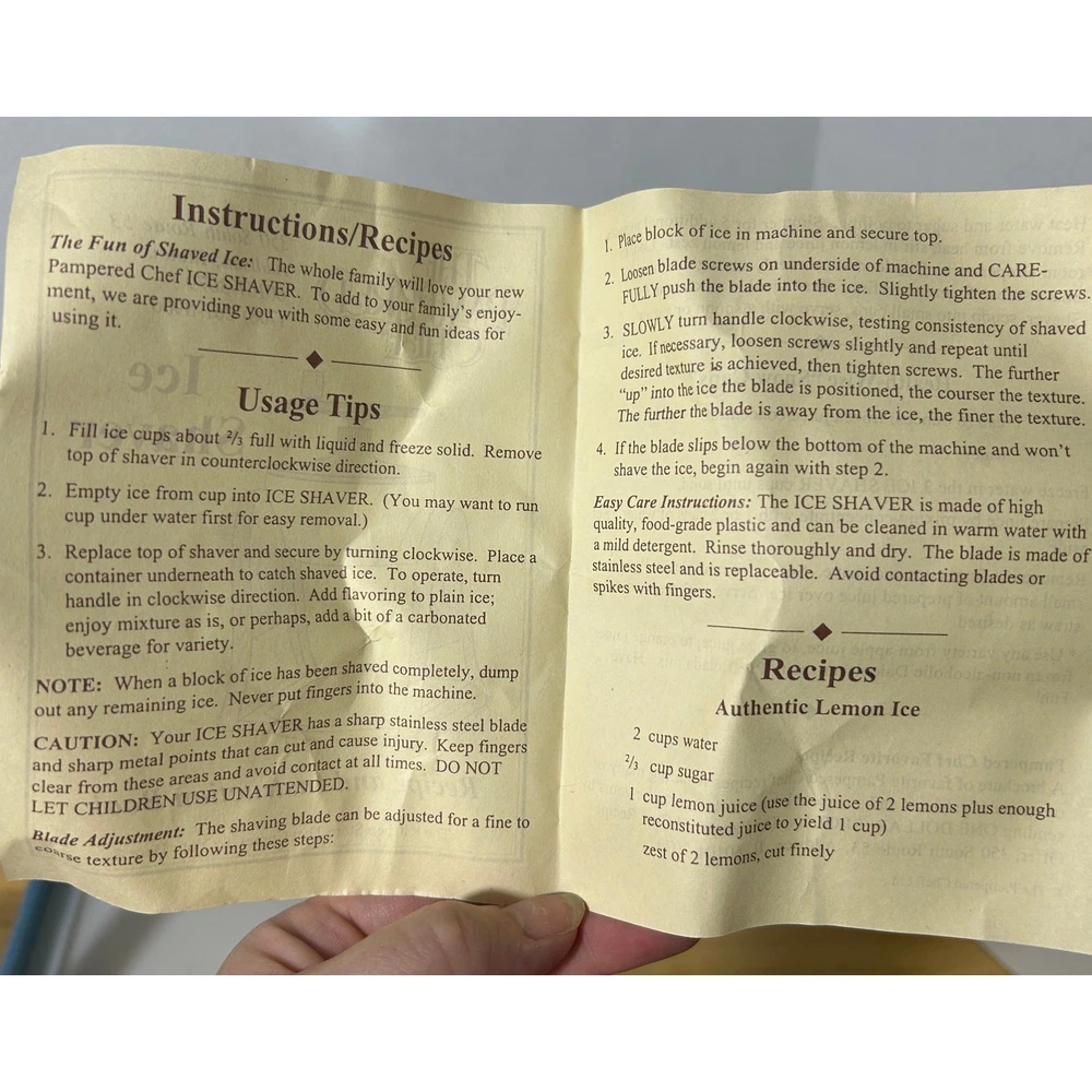 Vintage Pampered Chef Ice Shaver with Original Instructions - Complete Set