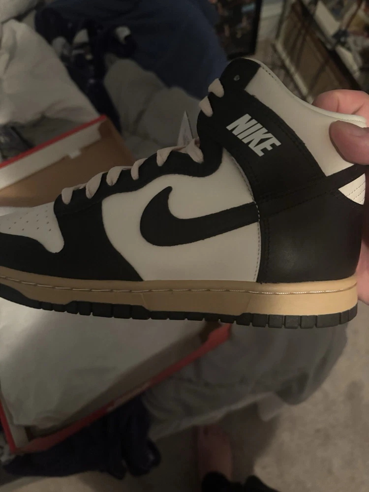 Elevate your sneaker game with these vintage Nike Panda Dunk High shoes. These stylish athletic shoes are perfect for men who want to make a statement. With a US shoe size of 7, these sneakers are designed to fit comfortably and provide the support you need during the day. The panda design is a nod to the popular Nike SB range, and the high-quality materials ensure that these shoes will last for years to come. Whether you're hitting the skate park or just running errands, these sneakers are the perfect addition to any wardrobe.