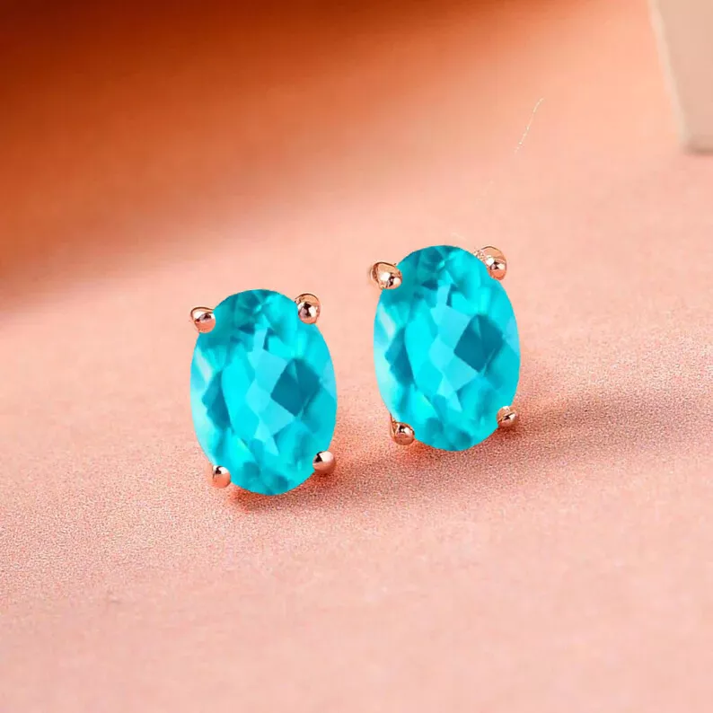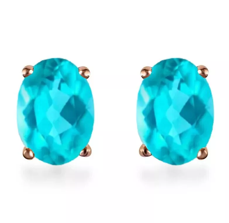 Vintage Paraiba Tourmaline Oval Stud Anniversary Gift For Her Rose Gold Jewelry