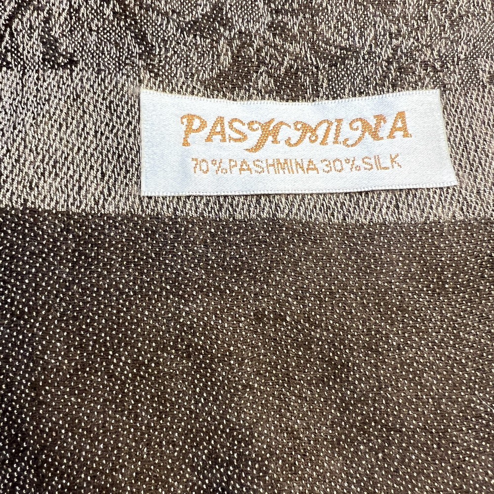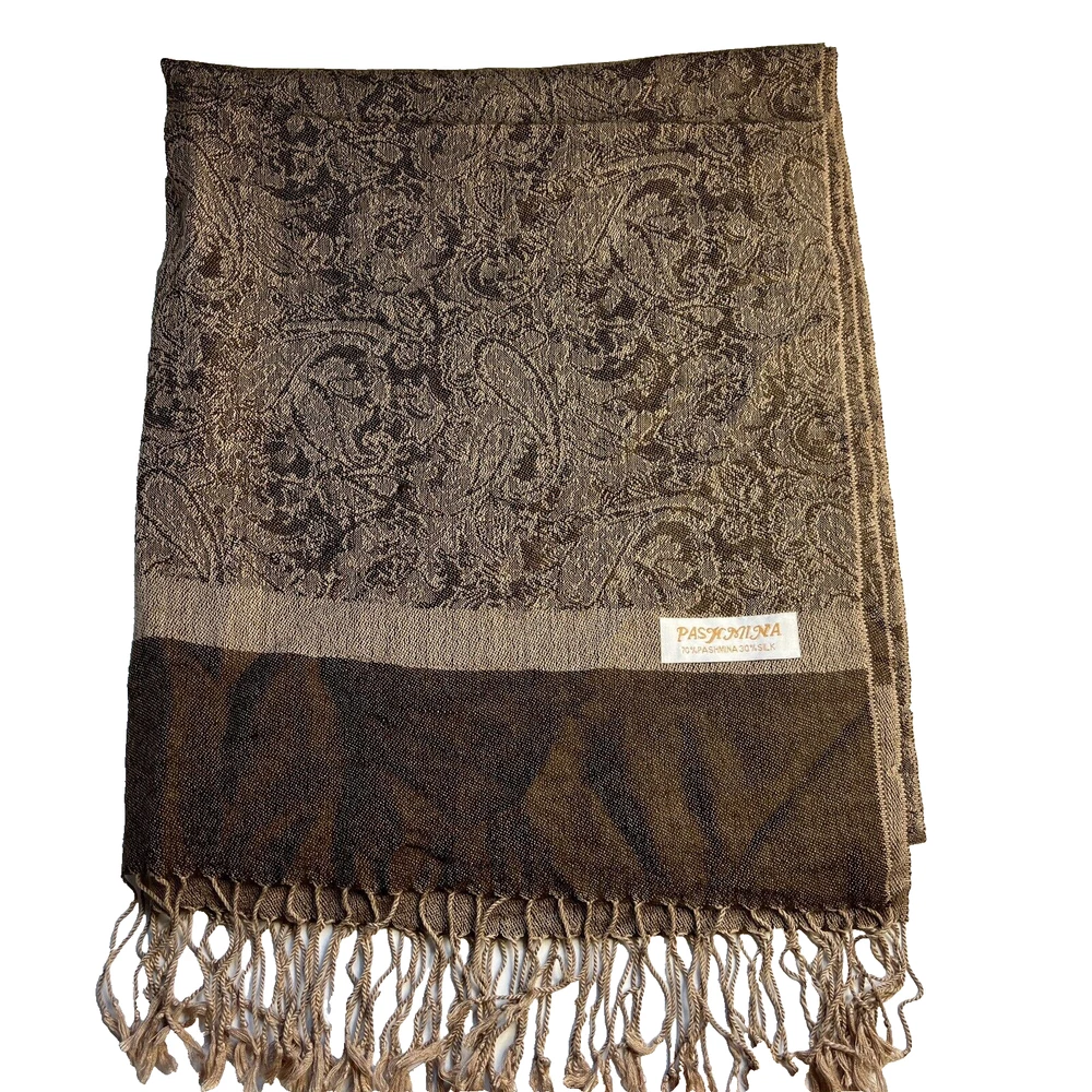 HomeVintage Pashmina Jacquard Scarf 70% Pashmina 30% Silk Brown French Tapestry Wrap
