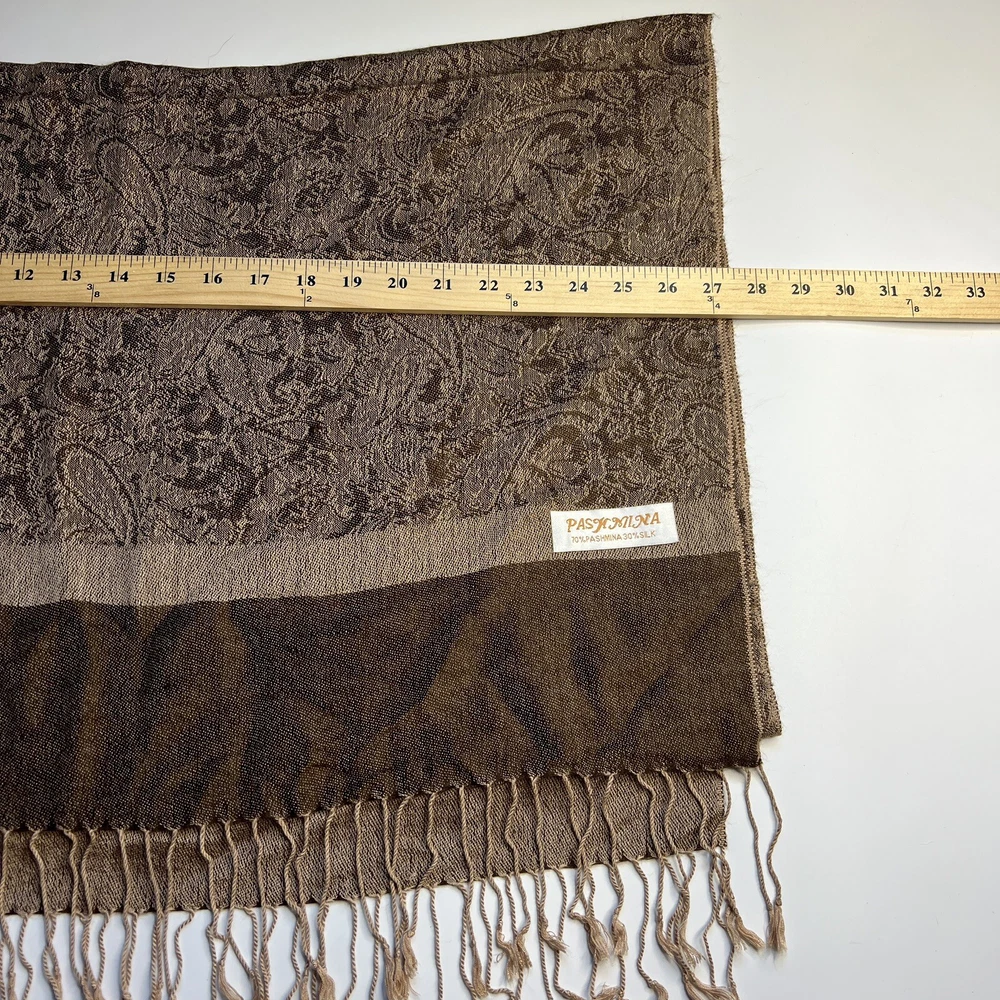 Vtg Pashmina Jacquard Scarf Wrap 70% Pashmina, 30% Silk Brown French Tapestry Good used condition!