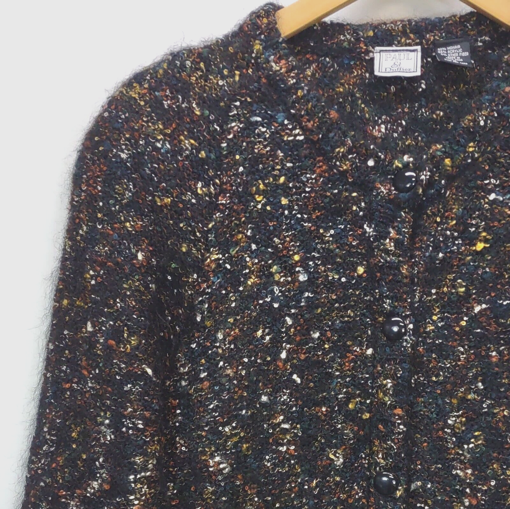 Vintage Paul et Duffier Sweater Womens Small Confetti Boucle Knit Mohair Button
