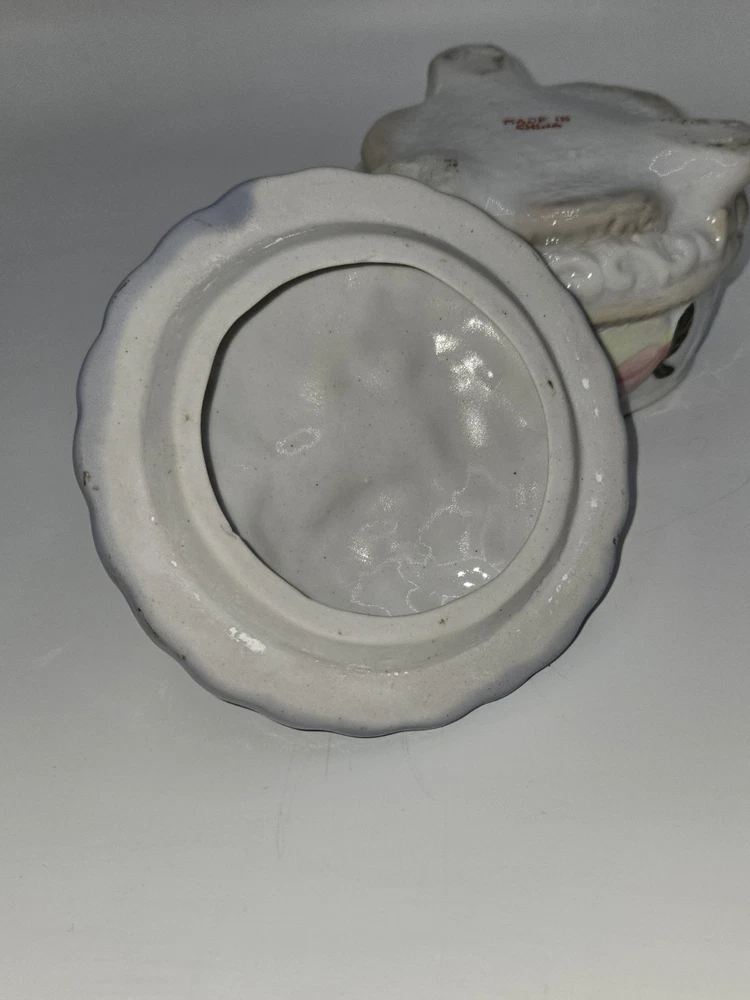This vintage trinket box is a charming piece made in China, featuring a French Country style with a colorful design of peaches. Crafted from porcelain, it serves as a decorative and functional item for storing small treasures or jewelry. The intricate detailing and vibrant colors make it a delightful addition to any collection or home decor with its nostalgic appeal and elegant design.