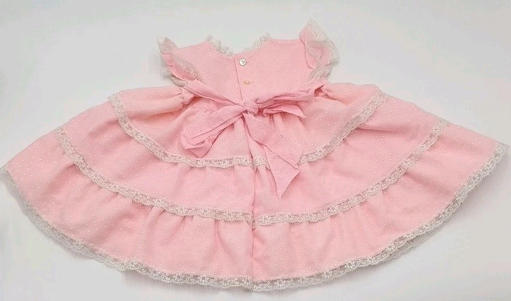 Great condition! Beautiful vintage dress with a very full skirt that could be worn with a crinoline slip or petticoat. Length - 14" Chest (Armpit to Armpit) - 9" Sleeve- 1.5"