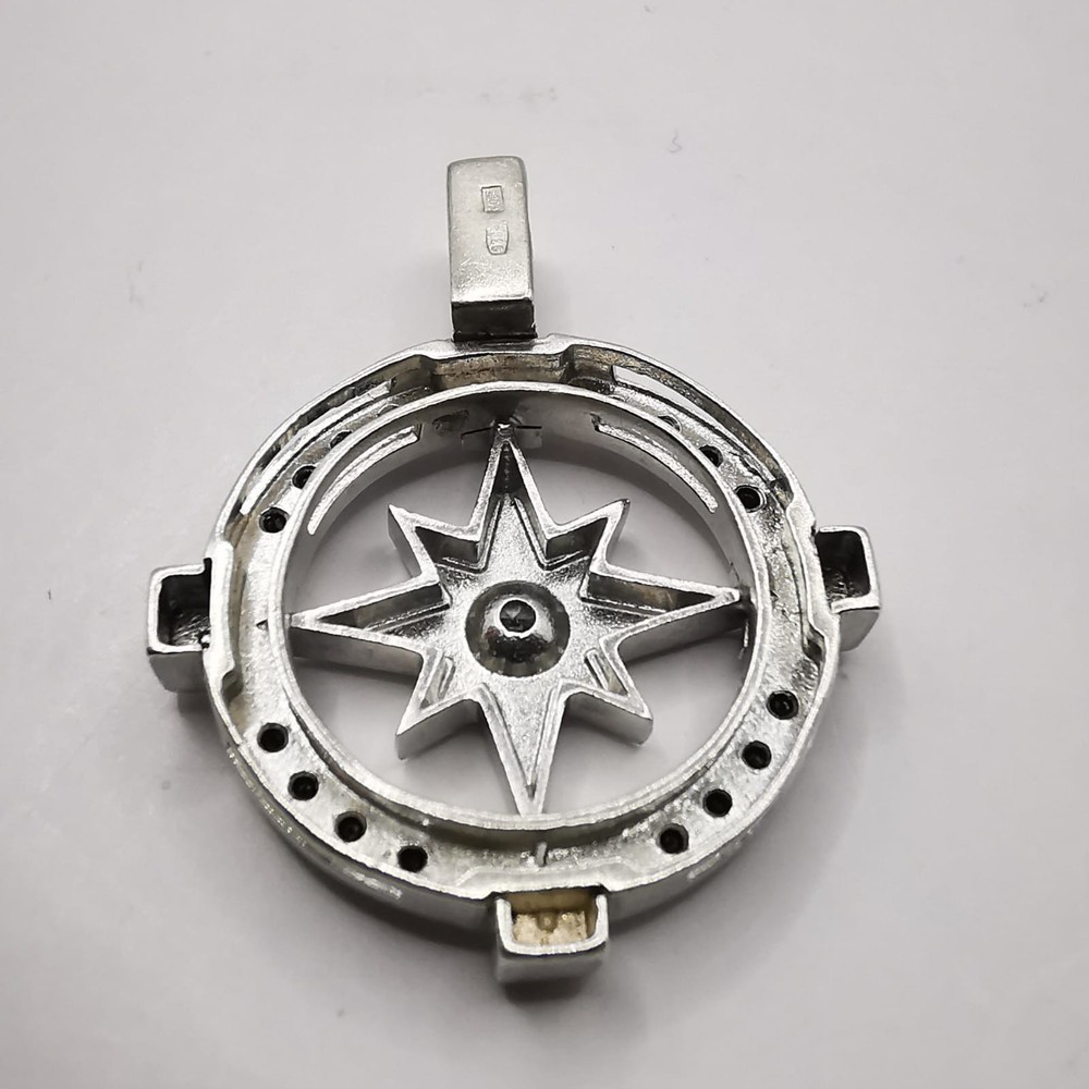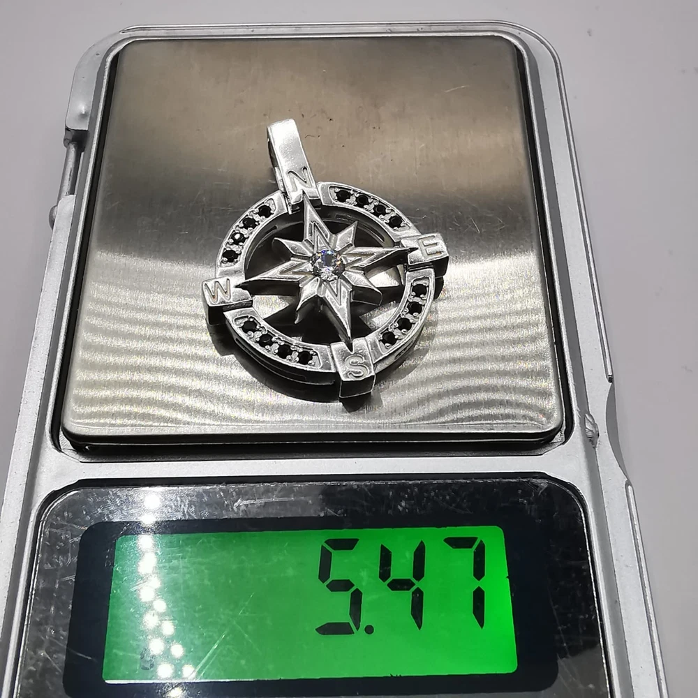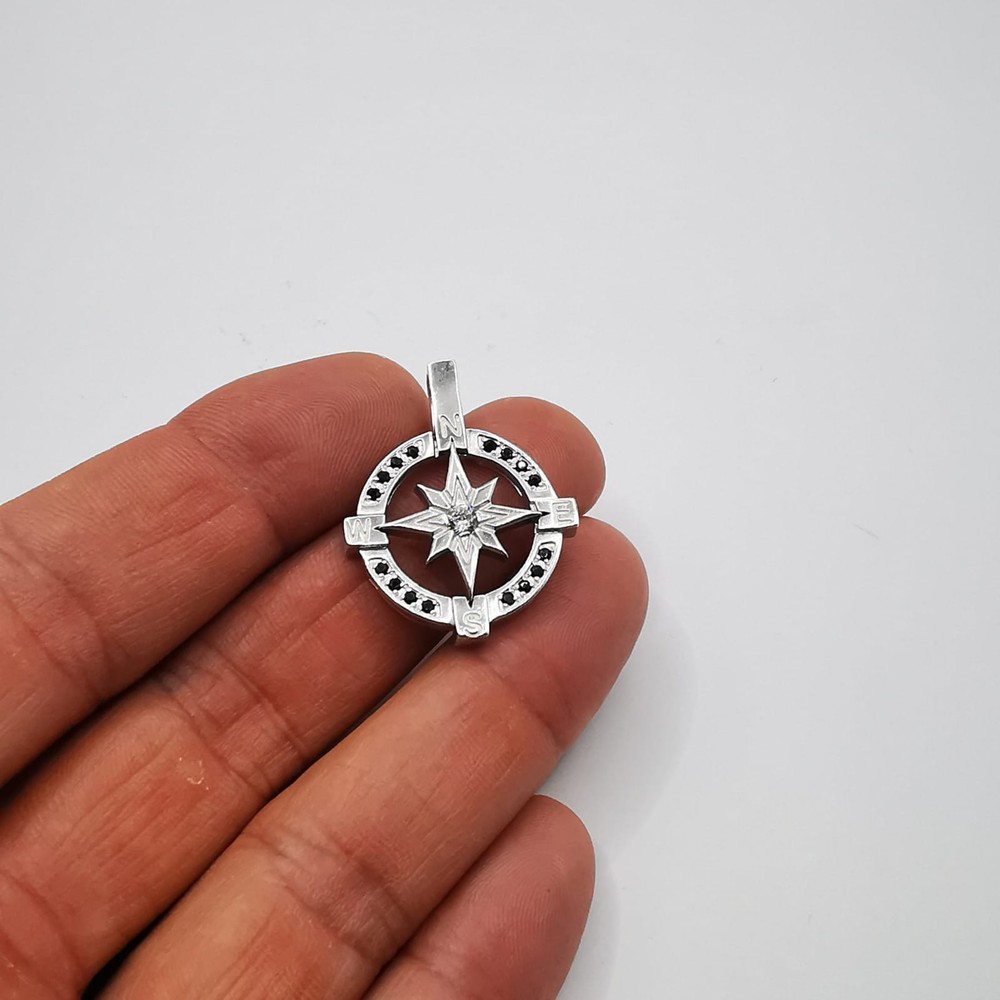 WELCOME Vintage Pendant Wind Compass Rose 925 Sterling Silver Created Zircon Spinel Stones Handmade Description: Metal / 925 Sterling Silver Length Width: 2,5 / 2,5 cm = 0.98 / 0.98 in Weight : 5.47g Stones: Zircon, Spinel. In very good condition, as shown in the photos. "Compass Rose" Pendant a classic symbol used in ancient maps to mark the four directions: North, East (E), South (S), and West (W). Encrusted with black stones and handcrafted, it also exudes an artistic and personal touch, as if it were a unique piece that expresses the wearer's personality. This is truly a masterpiece of presto for the collection. If you find yourself attracted to it, I highly recommend that you buy it now. This is a lovely item to own or to give as a special gift. Please review all photos closely, since they are a large part of my item description (all made with daylight, to show the color as authentic as possible). Shipping I do worldwide shipping by Registered mail with a tracking number. Shipping takes up to 21 business days All additional payments such as tax, are the buyer’s responsibility. Return policy I checked each product and I sell only the best quality ones. In any case, if you are not satisfied with the product please get in touch with me and I will do everything for your satisfaction. You have a 100% guarantee and refund; it is only accepted within 14 days in its original packaging and the condition of the item you bought must remain the same. Buyers pay for shipping and all additional payments such as tax. Feedback: I give immediate positive feedback to buyers as soon as the payment is received for the purchase. In any case, if there is a problem contact me right away before leaving feedback. I will do my very best to resolve any problem that occurs and satisfy you . Thank you for shopping 😊