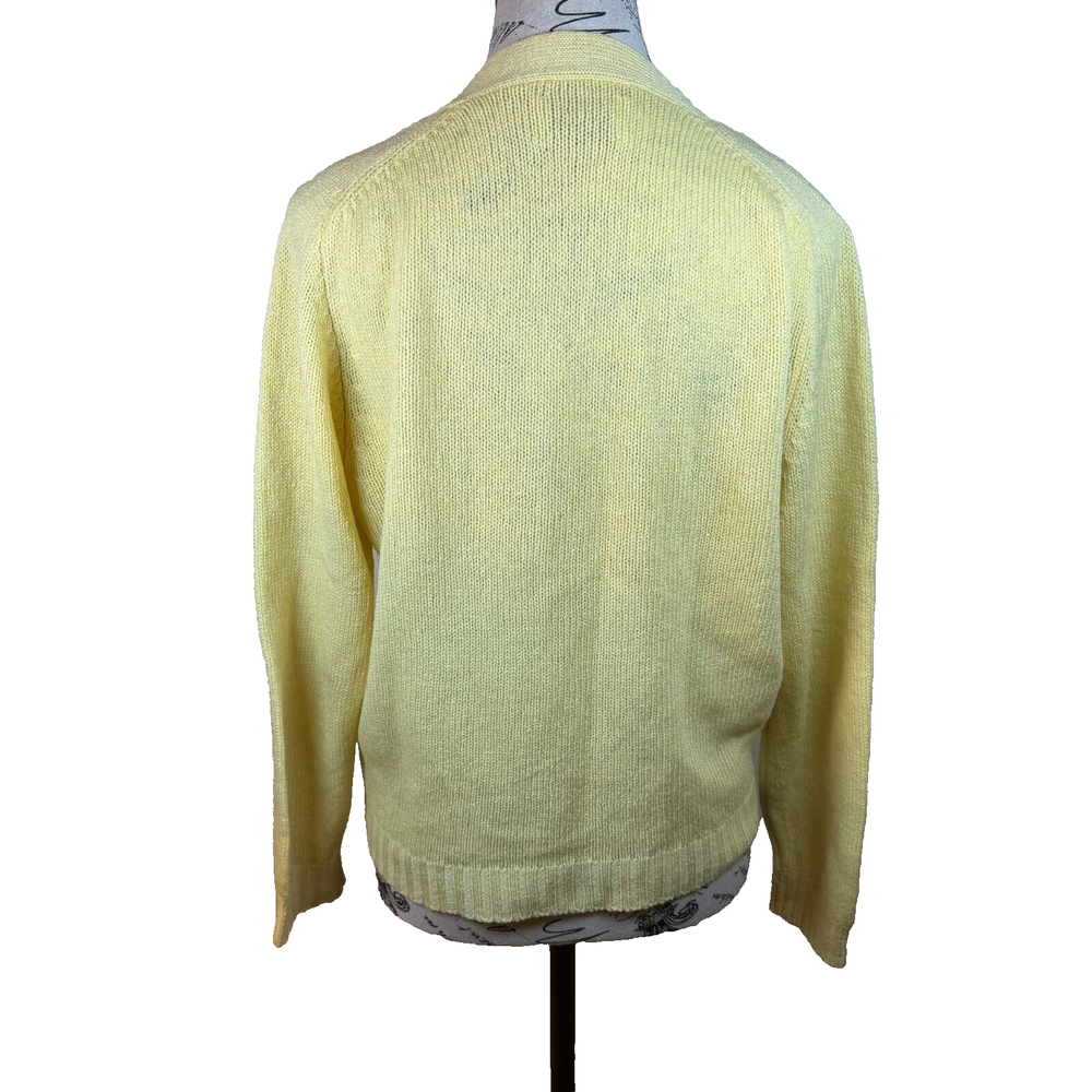 This cozy vintage Pendleton cardigan is a dream—soft 100% wool, perfect V-neck, and classic button-front style. The yellow shade is cheerful and versatile, while the excellent preowned condition means no flaws, just warmth and charm. Fits true to size, and the lightweight knit makes it ideal for layering. Love the ‘90s nostalgia with timeless quality!