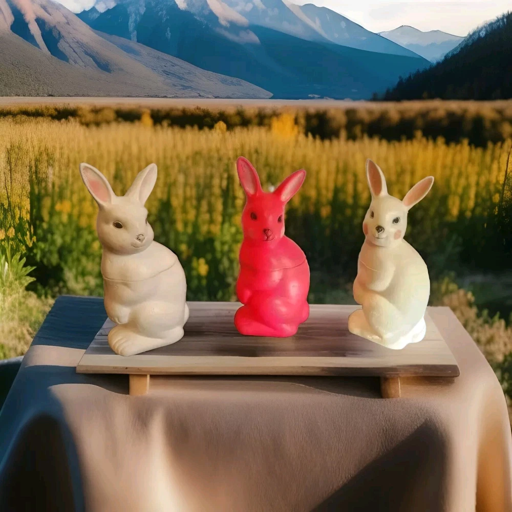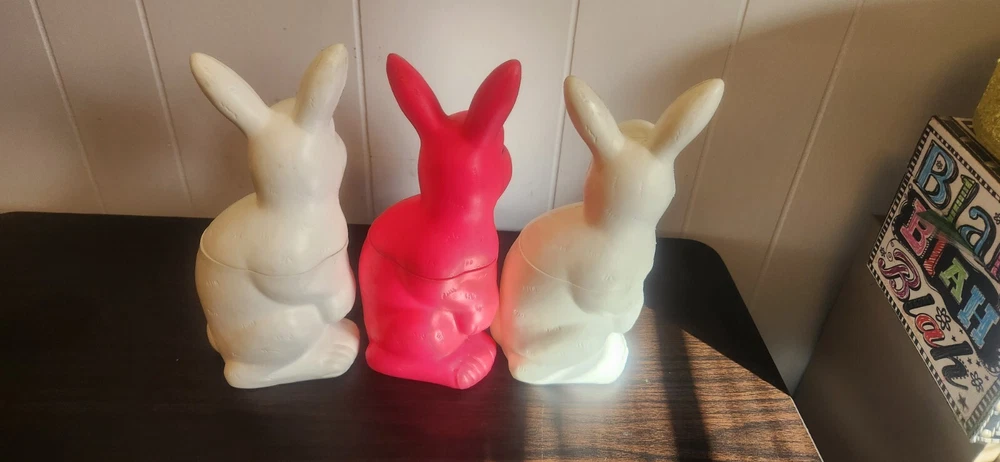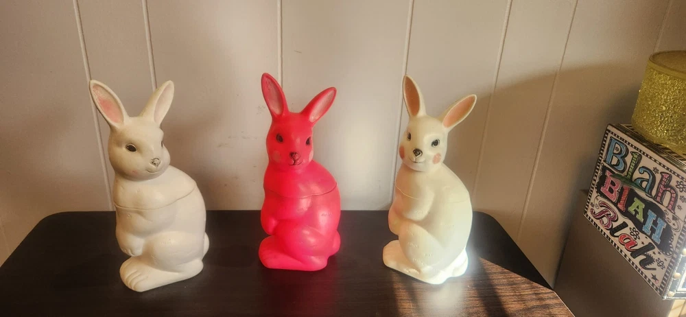 Vintage Peoria Plastic Blow Mold Easter Bunny Fill n Thrill Rabbit Candy Lot