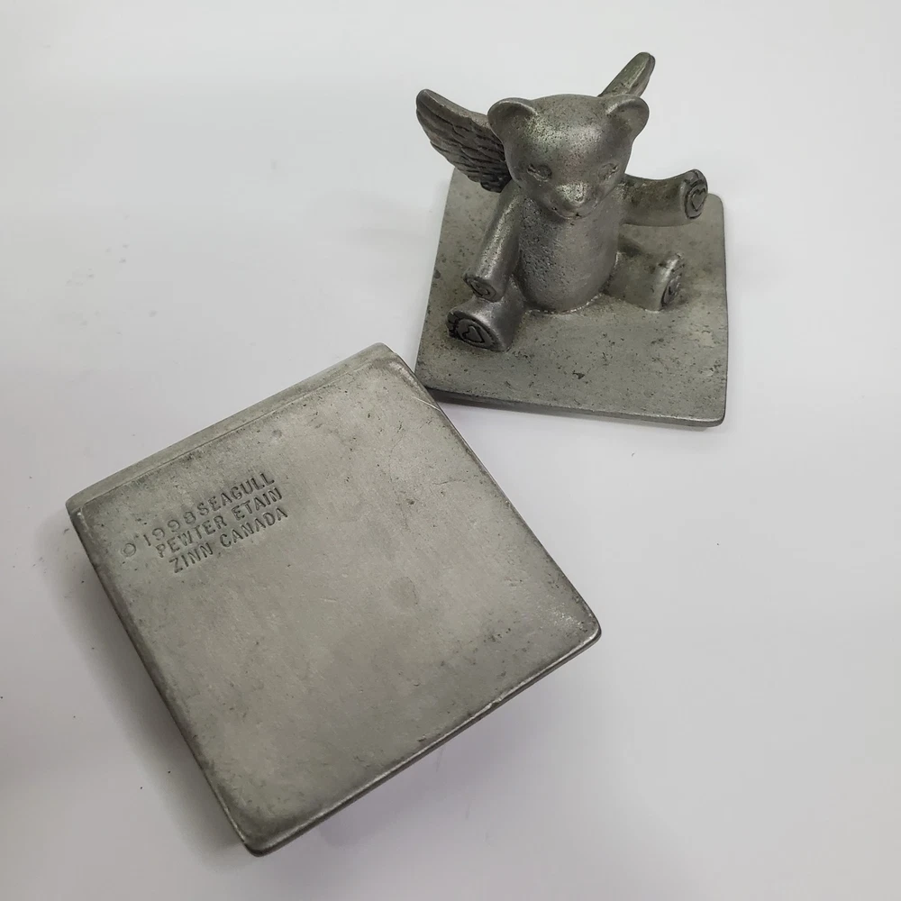 This item is Vintage 98 in Pre-Owned condition please see pictures for condition reference. Delight in the charm of yesteryear with this vintage Seagull Pewter Tooth Fairy Tales Keepsake Box. Crafted with care in Canada, the trinket box captures the whimsy of fairy tales, featuring a delightful 3D effect that brings the story to life. Its square shape and small size make it a quaint addition to any collection. Encased in a silver hue, this box is not just a holder but a time capsule of memories, echoing the style of the 1990s. The bear subject adds a touch of endearing nostalgia, perfect for those who appreciate the magic of storytelling and the nostalgia of the era.