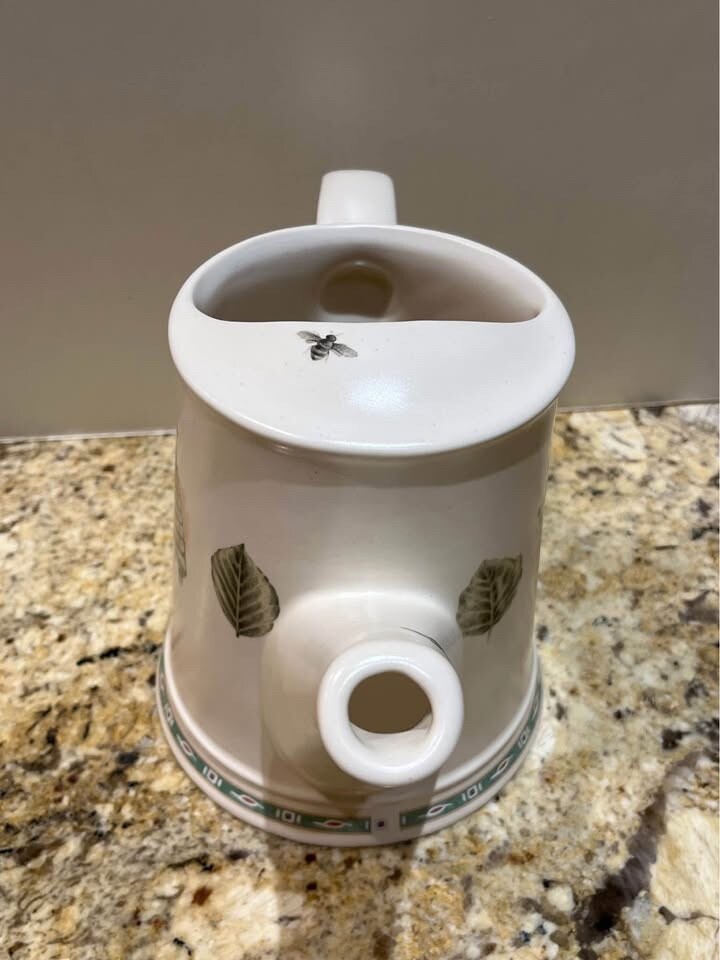 Adorable vintage stoneware watering can/pitcher from Pfaltzgraff’s Naturewood Collection , in very good condition! 🥰 🐝🪴 6.25” tall 4.24” x 2.25” top opening 10.5 spout tip to back handle 5.875” bottom diameter