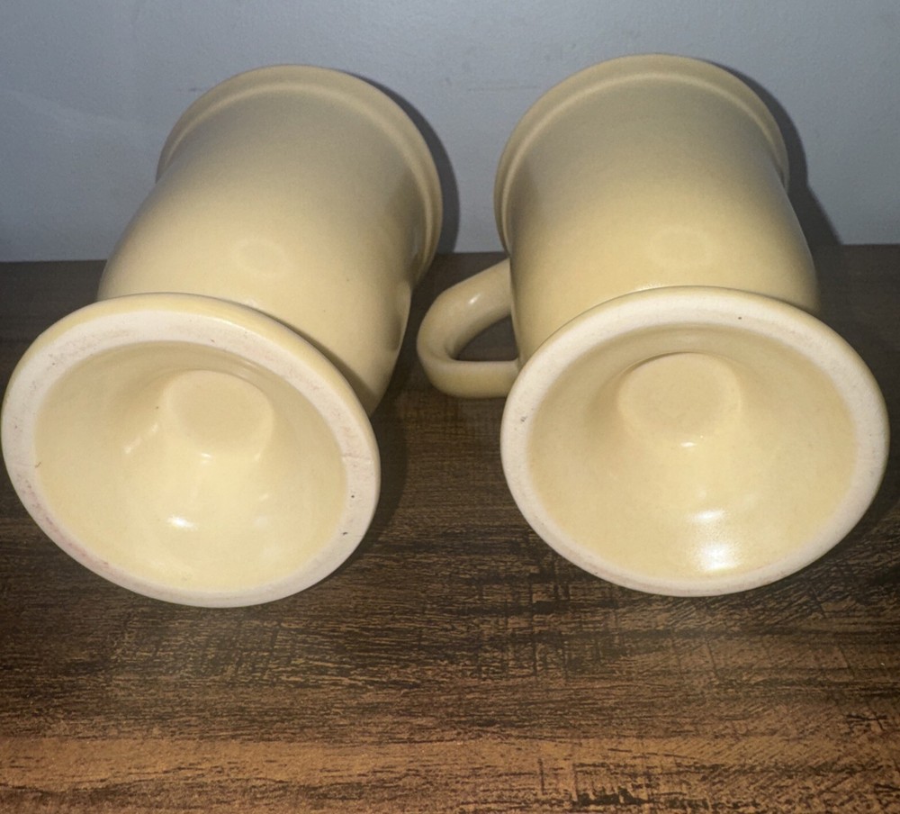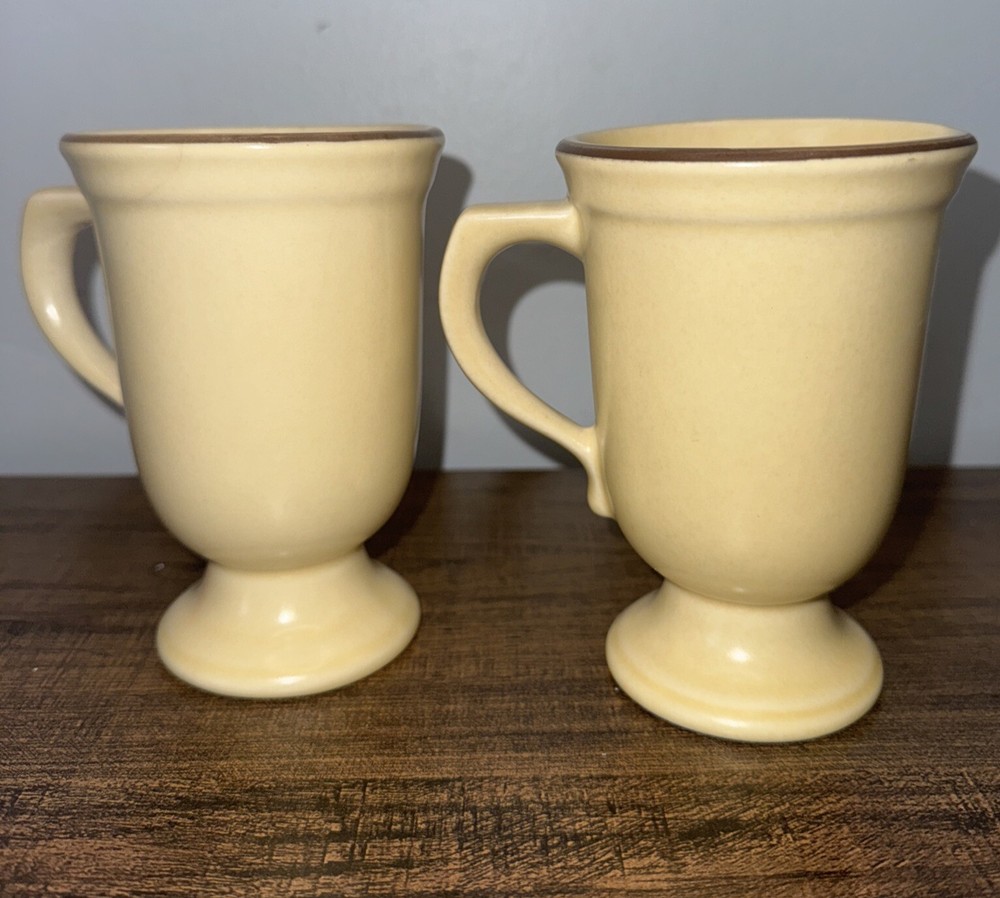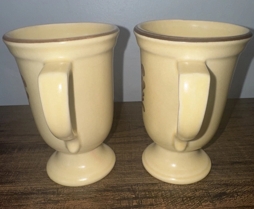 Up for sale is a set of two vintage Pfaltzgraff Village pedestal coffee/tea mugs cups. These mugs feature a beautiful floral theme and were manufactured in Pennsylvania in 1976. They are round in shape and have a capacity of 8 oz. These mugs are in great condition and are perfect for all occasions. They are dishwasher and microwave safe and have a glossy finish. These mugs are part of the American product line and are a great addition to any mid-century modern collection. Hand wash only to maintain their beauty. One mug the print is a little lighter and on the other mug looks like a manufacture defect. The look as though they have never been used. Look in pictures please.