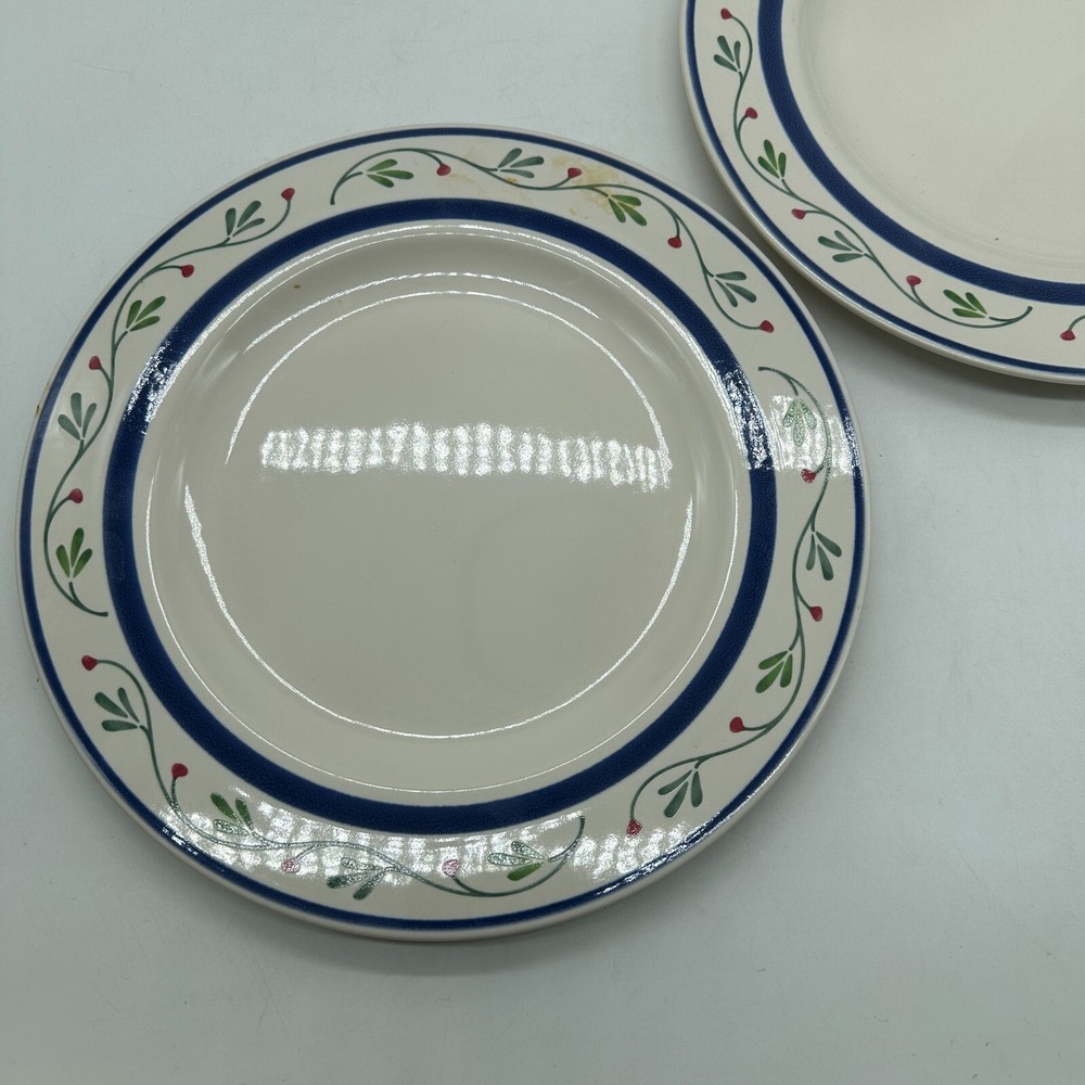 Add a touch of elegance to your dining experience with these two Pfaltzgraff dinner plates in the Wyngate Floral pattern. Made of high-quality stoneware, these plates are perfect for all occasions. The multi-color design adds a flower-themed touch to your table setting. These contemporary original plates were manufactured in the United States in the 1990s. The backstamp is visible in the pictures provided. These plates are not vintage but have a production style that is unknown. The set includes two dinner plates, and they are not handmade. The product line is also unknown. Get ready to impress your guests with these beautiful plates from Pfaltzgraff.