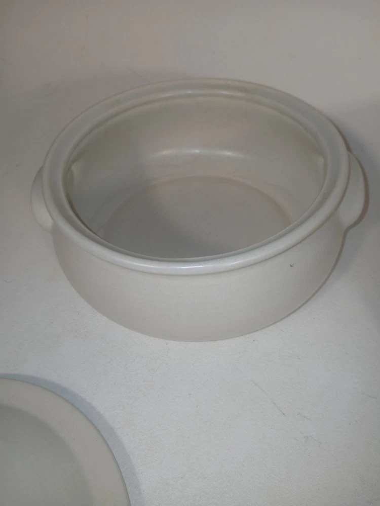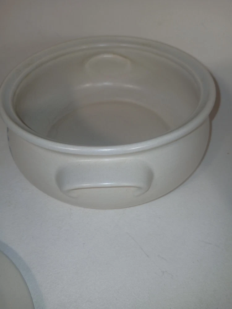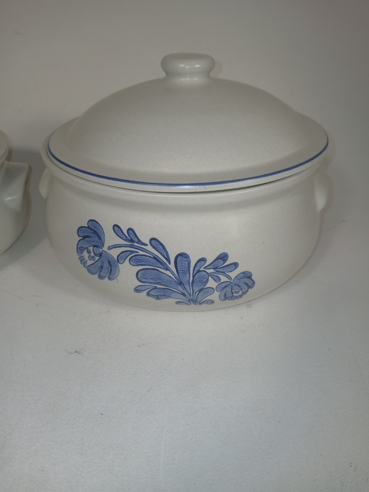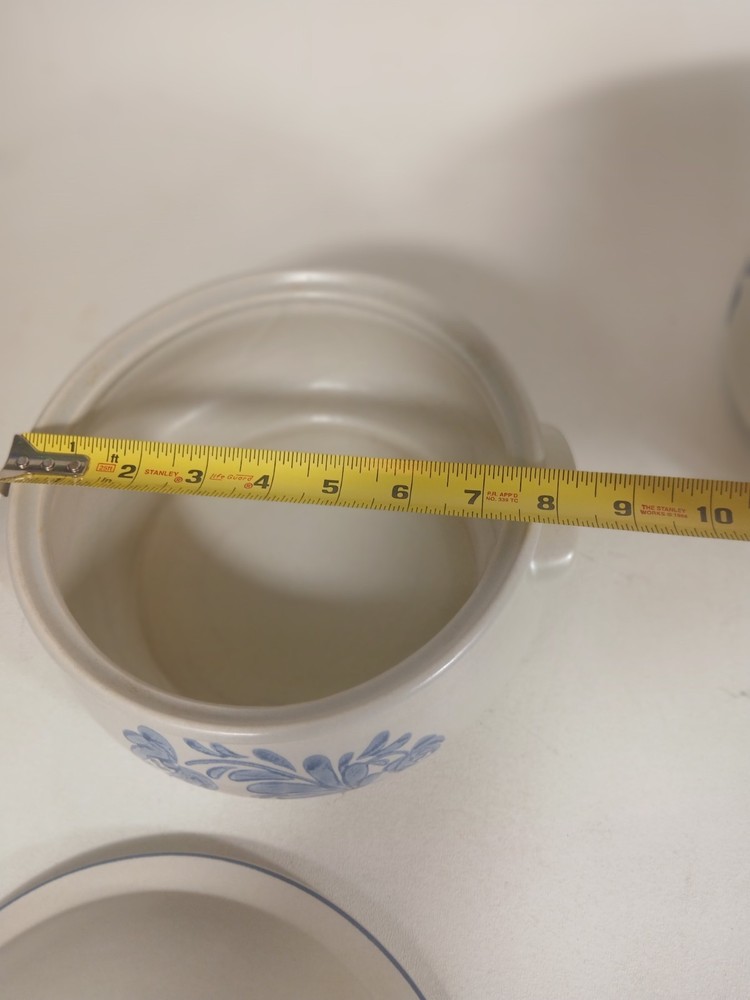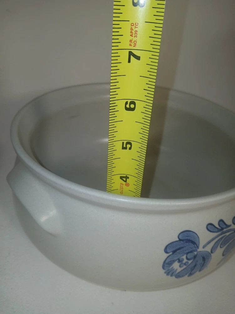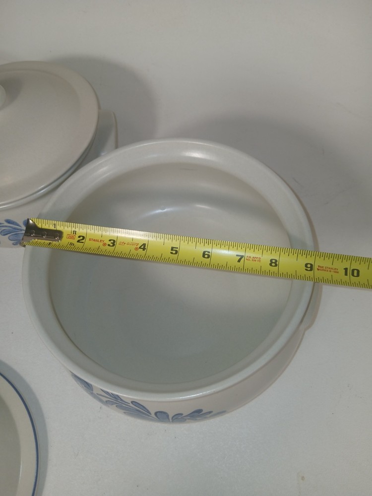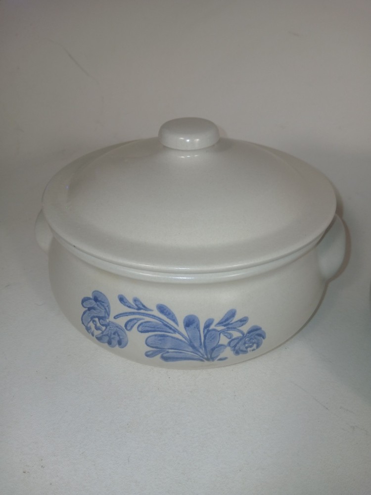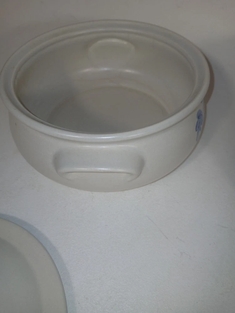 This set includes a 2 QT and Rare 3 Qt covered casserole dish by Pfaltzgraff in the Yorktowne pattern. The casserole dishes feature a gray color and come with lids for easy storage and transport. These vintage original pieces from the Pfaltzgraff Yorktowne 315Y and c3 model are both functional and stylish, making them a great addition to any kitchen or dining room. very few 3 qt out there. $165 listed used very small chip on lid on smaller one (see photo) couple marks / smudges on each each has mfg imprerfections in color, there is a small bubble, imperfection 1/16 inch on bigger one on left side under emblem see photo emblems show bit of wear esp on smaller one. wear on bottom on jars