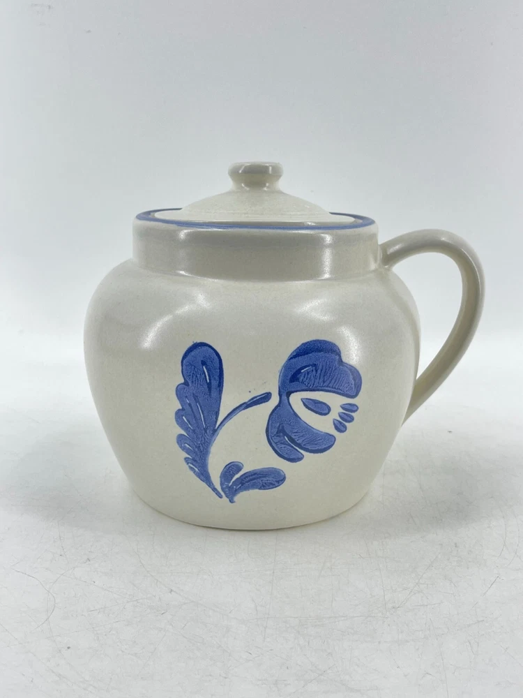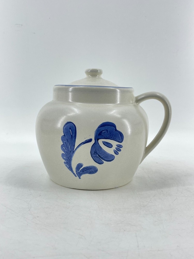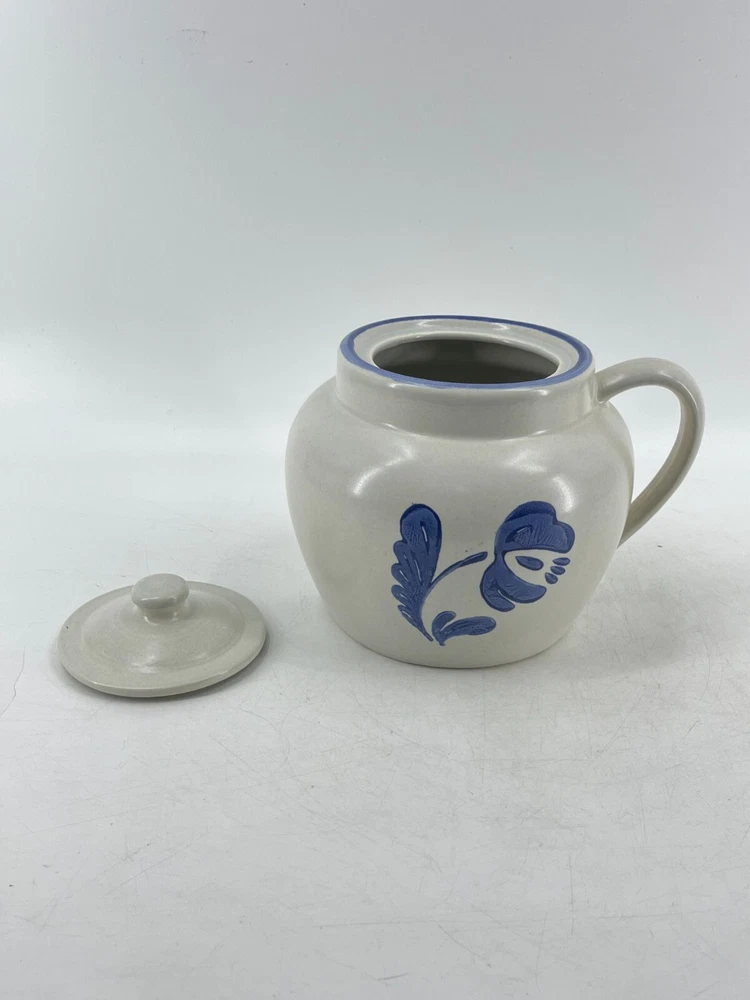 Vintage Pfaltzgraff Yorktowne USA Blue Floral Handle Bean Pot With Lid Number 70 7" diameter and 7" tall. Classic piece.