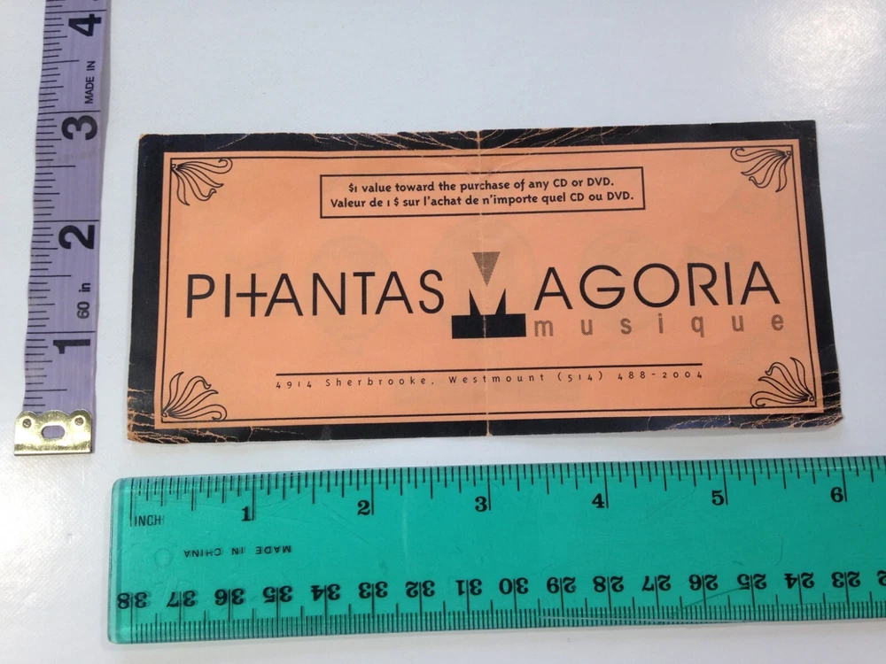 A Vintage Phantasmagoria Record Store Coupon from the Westmount location. Folds, creases, wear. Sold as is. Customs duty - Buyers outside the US and Canada: Import duties, taxes, and charges are not included in the item price or shipping cost. These charges are the buyer's responsibility. Please check with your country's customs office to determine what these additional costs will be prior to bidding or buying.
