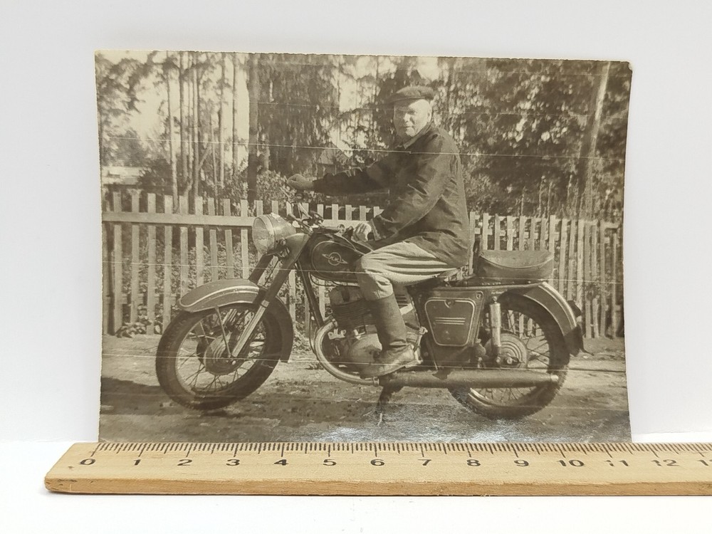 Vintage - Photo - Guys on a retro motorcycle - Old photo. 1960