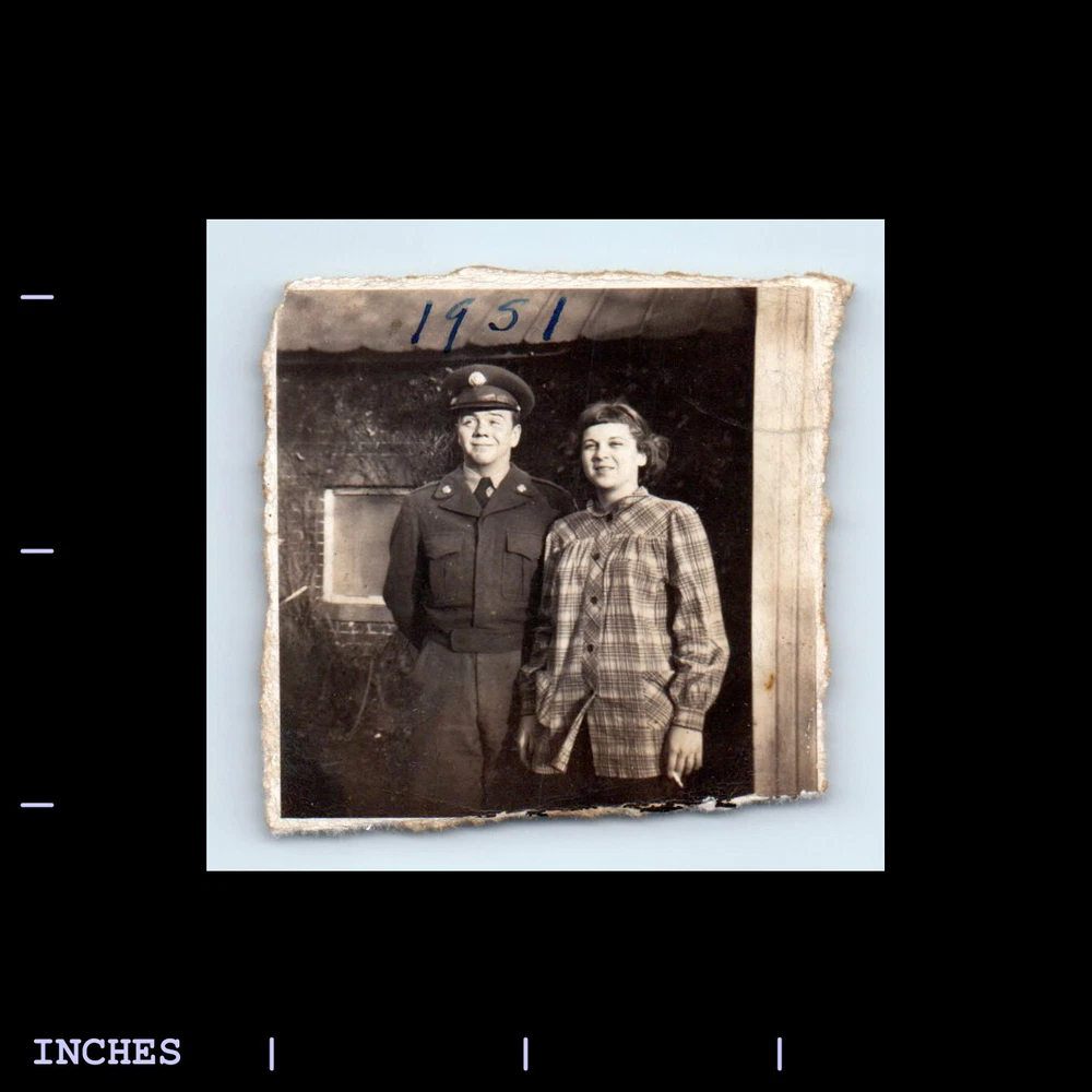 Vintage Photo MAN WOMAN ARMY SOLDIER IN UNIFORM 1951