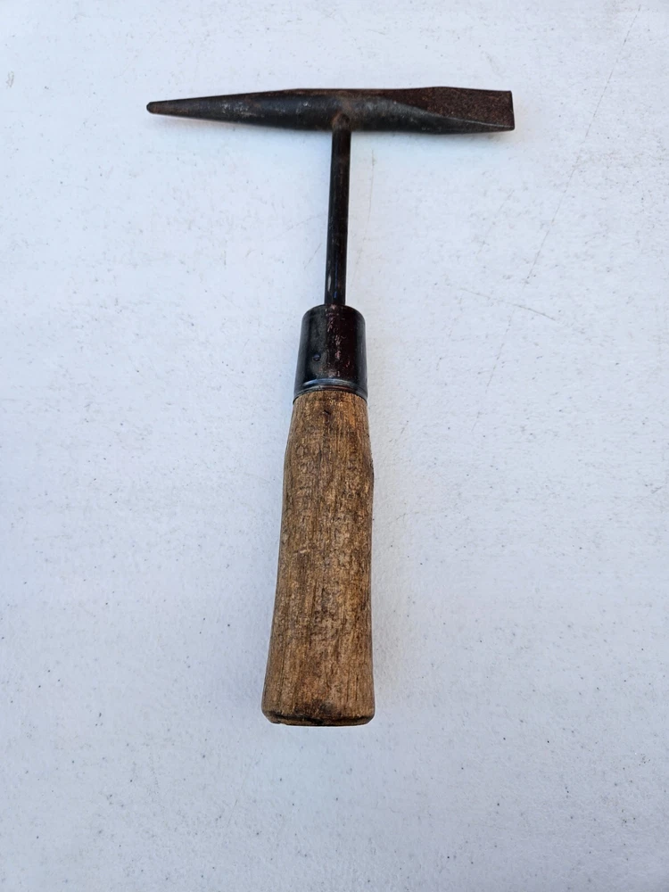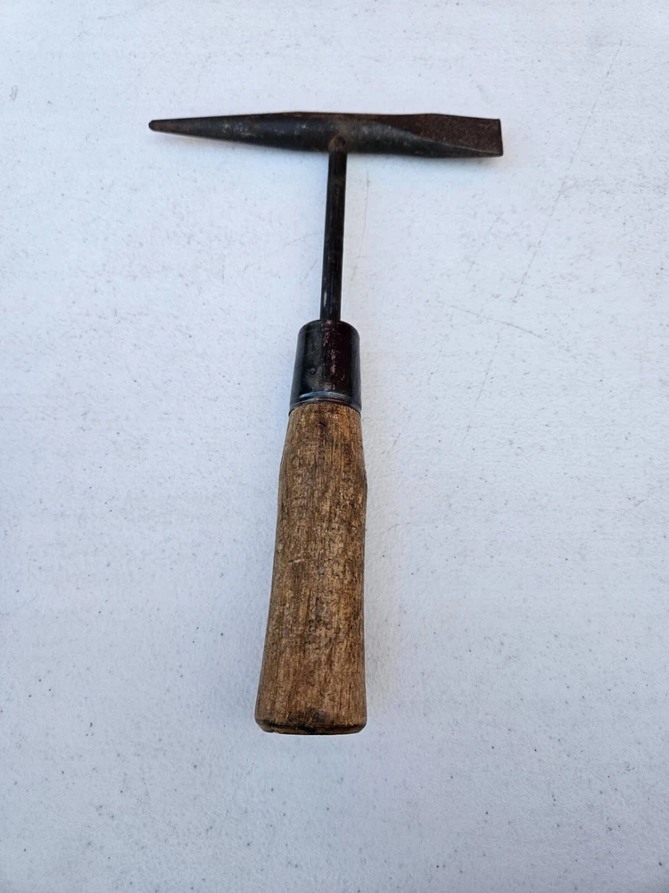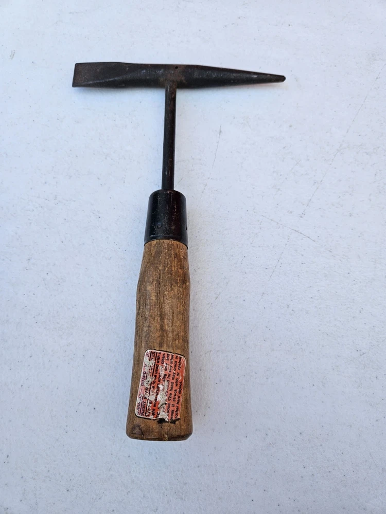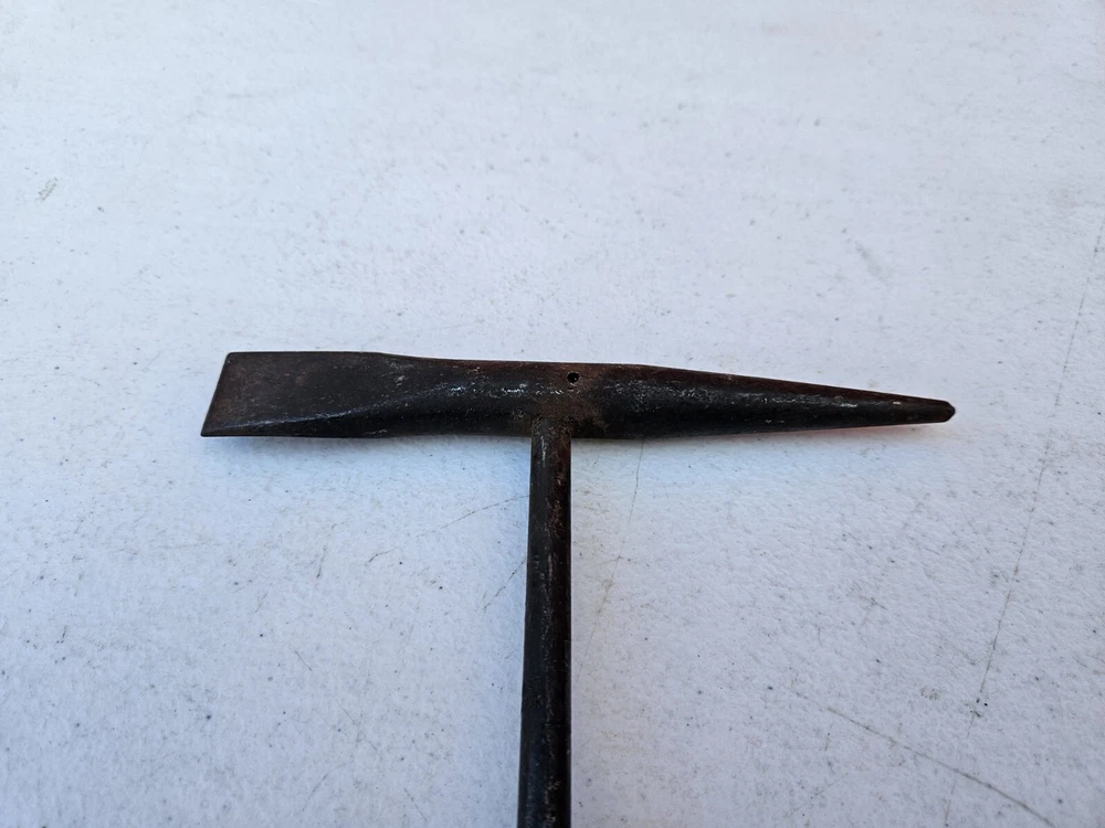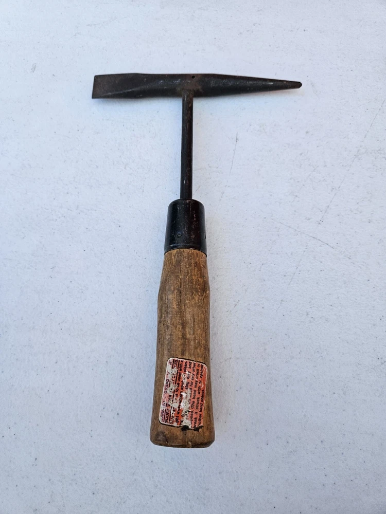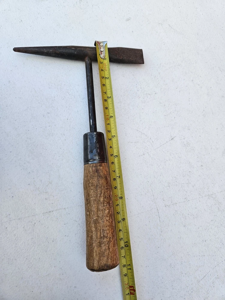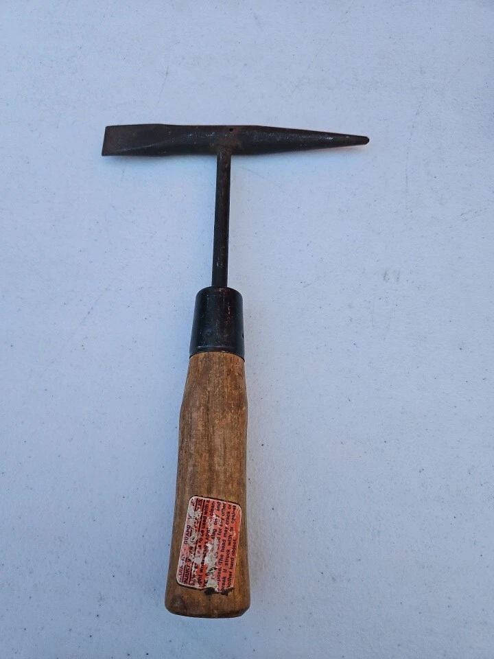 This vintage pick hammer is a unique addition to any collection. The rock chisel axe tool features a 10.5" long head and a 6.5" wood handle. The hammer is a vintage original and is perfect for collectors or anyone who appreciates vintage tools. It is ideal for use in carpentry and woodworking and is sure to be a conversation starter. Inherited dont know much about item Seems very sturdy.