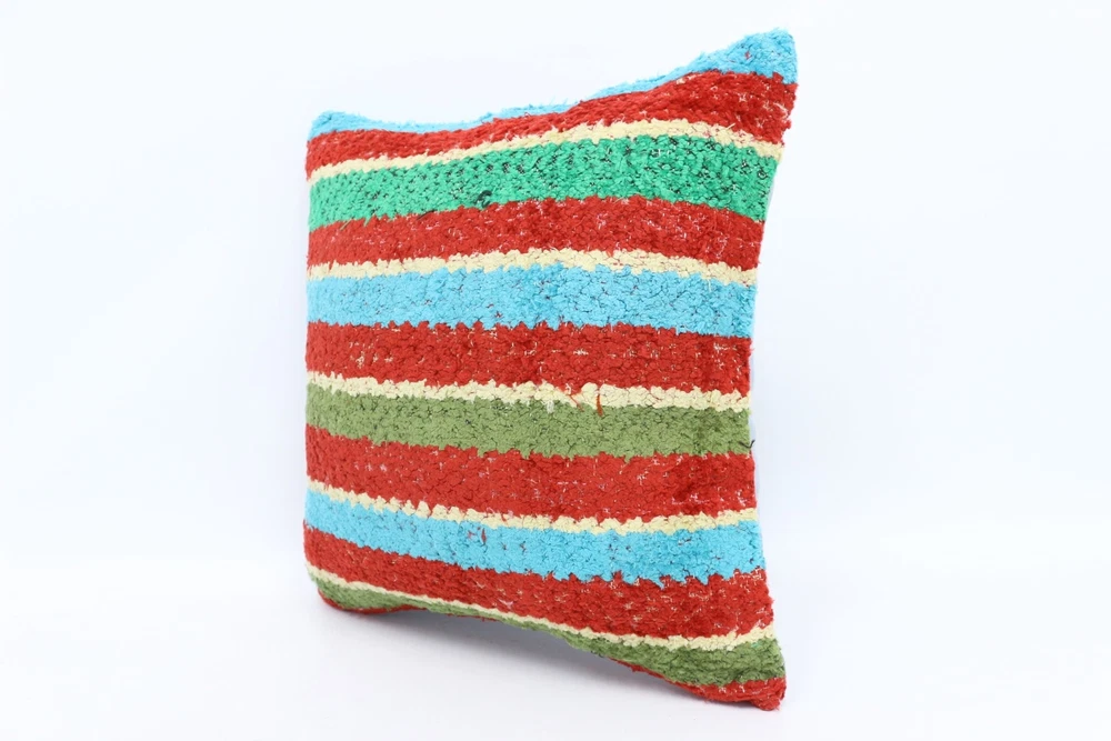 Kilim Pillow Details: All of my beautiful pillow covers or cushion cases are designed and made by me. I am making my throw pillow covers from handmade vintage rugs, Turkish rugs. Therefore, each of my vintage kilim pillowcase is one of kind. These cushions covers are piece of an art. The size of this pillow is 18 x 18 inches or 45 x 45 cm. The front side of this decorative pillow cover, cushion cover is wool on wool vintage kilim rug. The backside of this throw is high quality cotton fabric with a high quality zipper. This listing has 2 option for this handmade pillow. You can choose with insert or without insert. The listing photos is with insert in the pillowcase which is just for demonstration purpose. All of my vintage Turkish rugs have been professionally washed before I cut them as pillow case or cushion case so these kilim covers are 100 posent clean and ready to use. Due to the age and handmade nature of these vintage rugs, there might be imperfections and flaws that are not considered defects. This is a piece of a handmade vintage rug with minor signs of wear consistent with age and use that give it an antique look. You can see the condition of the rug pillow clearly in the detailed photos. I am going to ship your order of decorative pillow as soon as possible. I usually ship in the next day with DHL Express or FedEx which will deliver the kilim pillow, cushion cover just in 3-5 business days. It is my responsible until you receive pillow cover or pillow cover with insert at your door. If the pillow cover or insert get lost or damage during the shipping, I will ship the new kilim pillow cover or pillow insert for free as soon as possible. I take photos of my throw pillows indoor with professional camera which shows the real colors. The photos of these Turkish pillow covers are not altered. Keep in mind the colors of the rug vary slightly in different lights. Please contact to me for additional photos. I take the photos of my vintage rugs outside with daylight to show you the real and natural colors. My photos are not altered. Keep in mind the colors of the rug vary slightly in different lights. Please contact to me for additional photos. SATISFACTION GUARANTEED for your order in my shop. Your SATISFACTION is the most important to me. Please write me if you have any question or if you don't like anything from my pillow covers, cushion covers. If any reason, you are not happy from your Turkish pillow cover, I accept return without any hassle. Please read my shop policies for details. This cushion case or pillow cover can be used as decorative throw pillow, gift pillow, Christmas pillow case, bedding pillow, lumbar pillow, sofa pillow, bohemian pillow, boho pillow. You can find in any kind of Turkish kilim pillow cover in different design such as striped pillow, embroidered pillow, and geometric pillow.