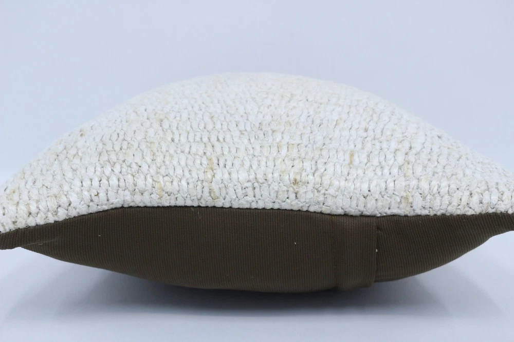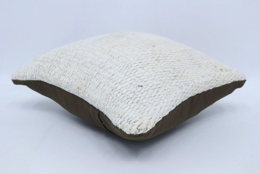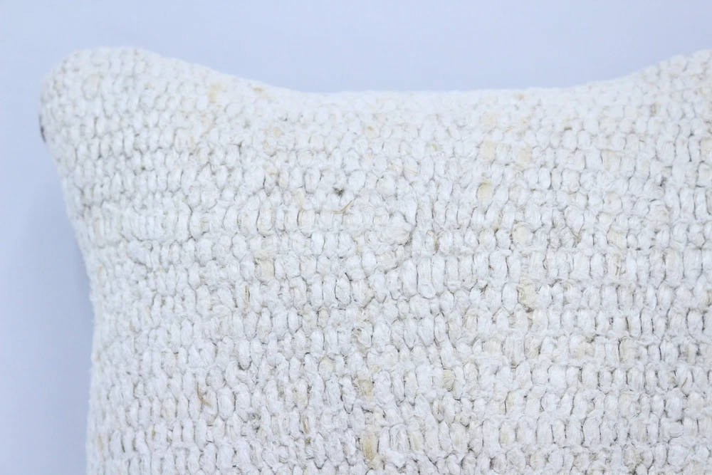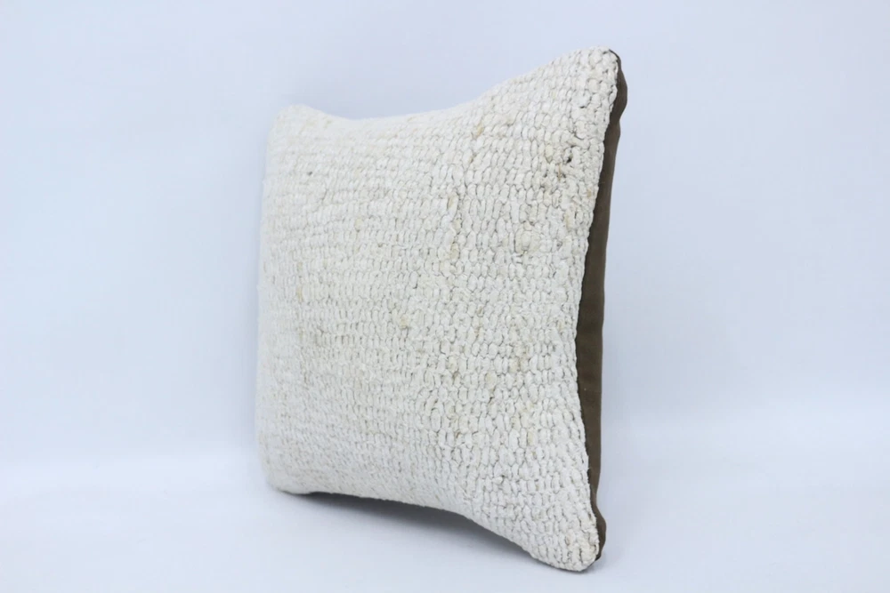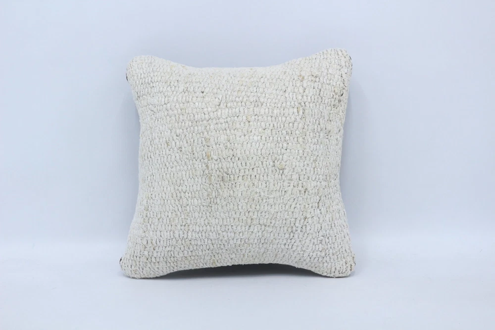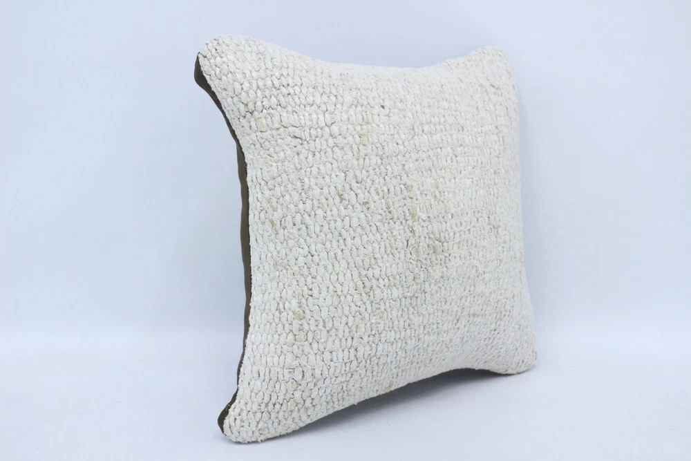 Vintage Pillow, Turkish Kilim Pillow, 14"x14" White Cushion Cover