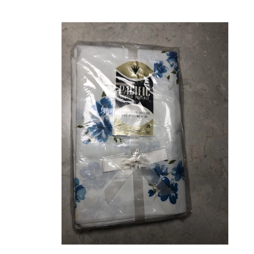 Vintage Pillow cases standard 100%cotton White with Blue Flowers 42x38 New