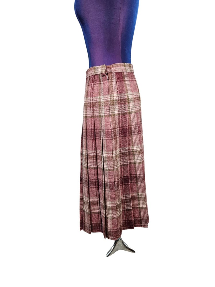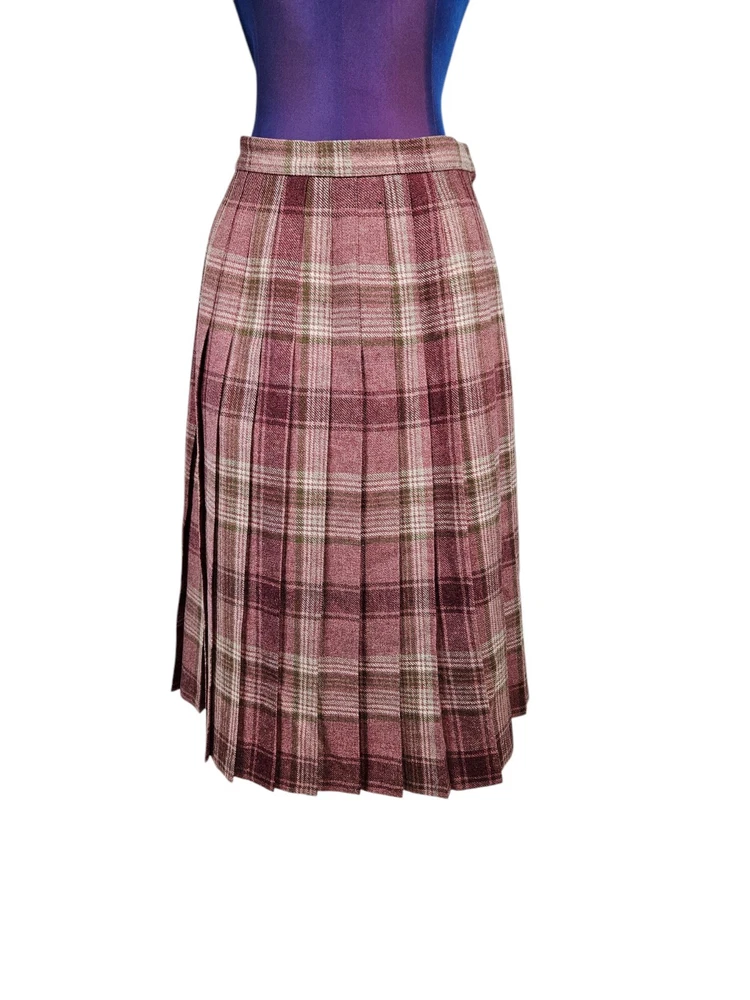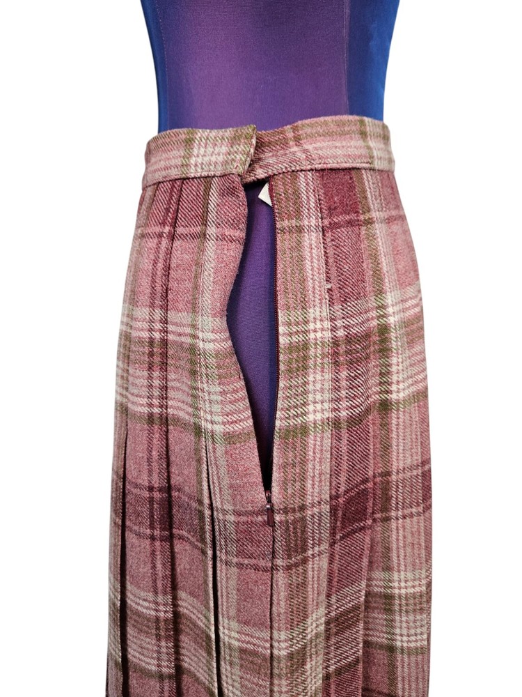 Vintage Edinburgh Woollen Mill Pink Plaid Wool Pleated Midi Skirt Size 12 D74 In great condition Vintage Edinburgh Woollen Mill Pink Plaid Wool Pleated Midi Skirt Size 12 D74 Mix and match this vibrant 1990s vintage flannel wool midi skirt with anything while staying stylish and warm! feminine pink hues plaid skirt with center box pleat and flat sides, fully satin lined, and waist side zipper closure. Labeled "The Edinburgh Woollen Mill". Academia style, Made in the Great Brittain. Measurements laying flat waist 12.5" length 27" hips 20.5" Fabric 100% pure new wool This is a pre-owned item that may show signs of wear. In great condition, a few small moth holes on skirt 14 Day returns accepted under the following conditions: Item must be in the same condition as stated If item shows additional wear buyer will receive a partial refund Buyer pays all shipping costs Refund amount will be for the item price only Please contact me prior to starting a return