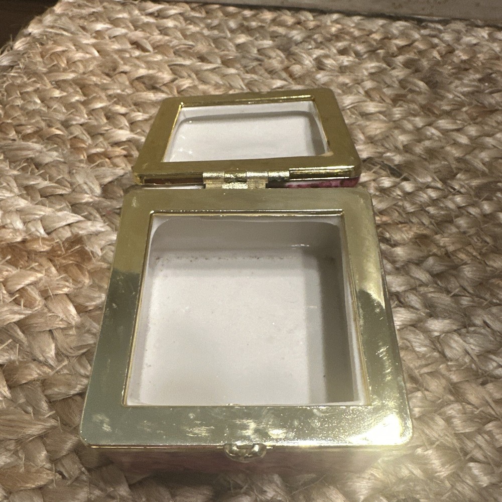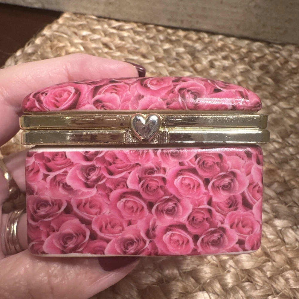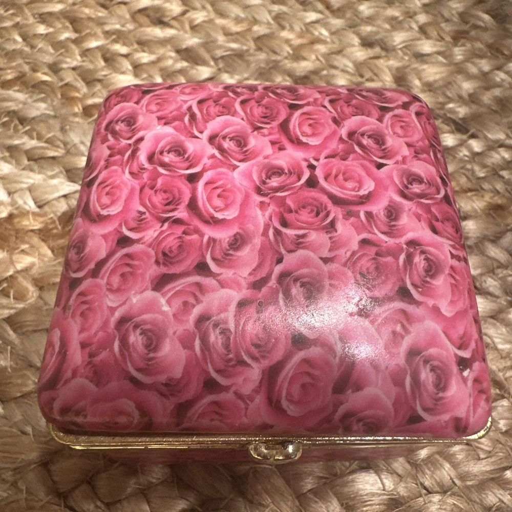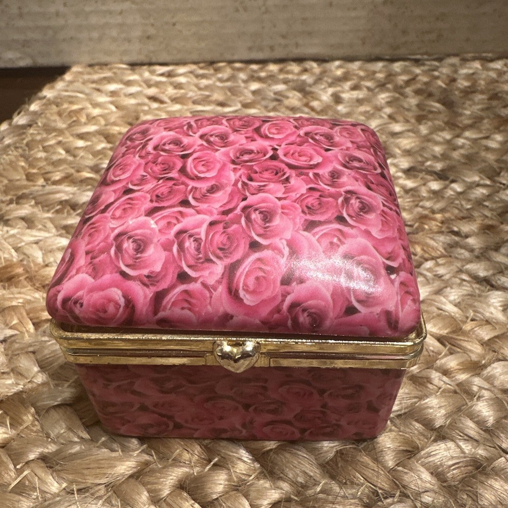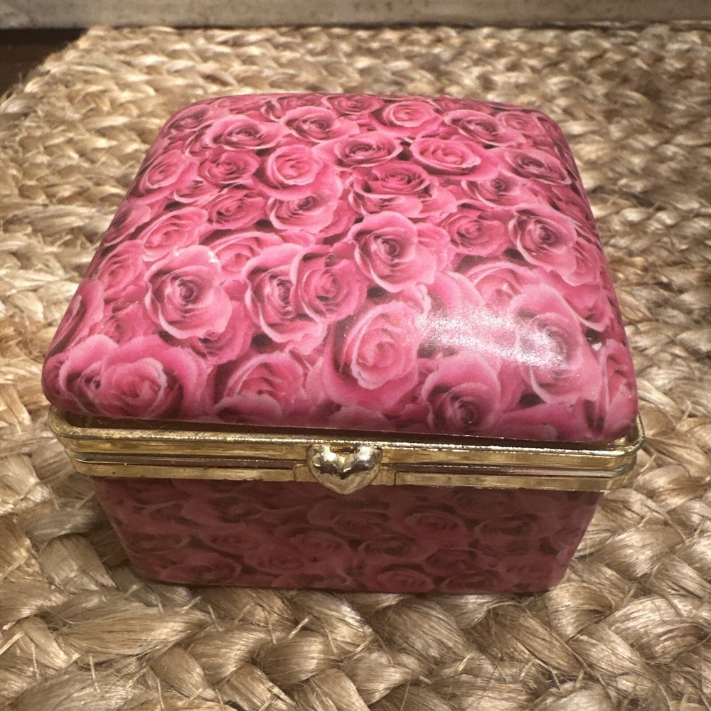 Features: Boxed Type: Trinket Box Size: Small Color: Pink Item Length: 2.5” Brand: Unbranded Subject: Boxing Shape: Square Pattern: Roses