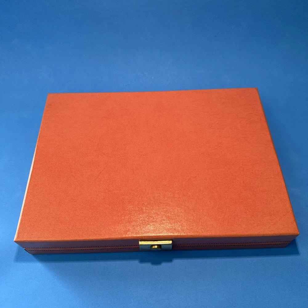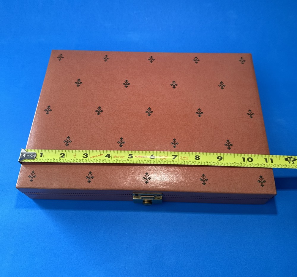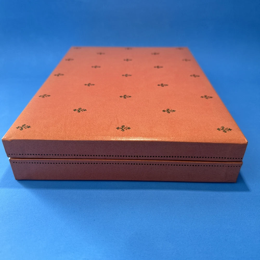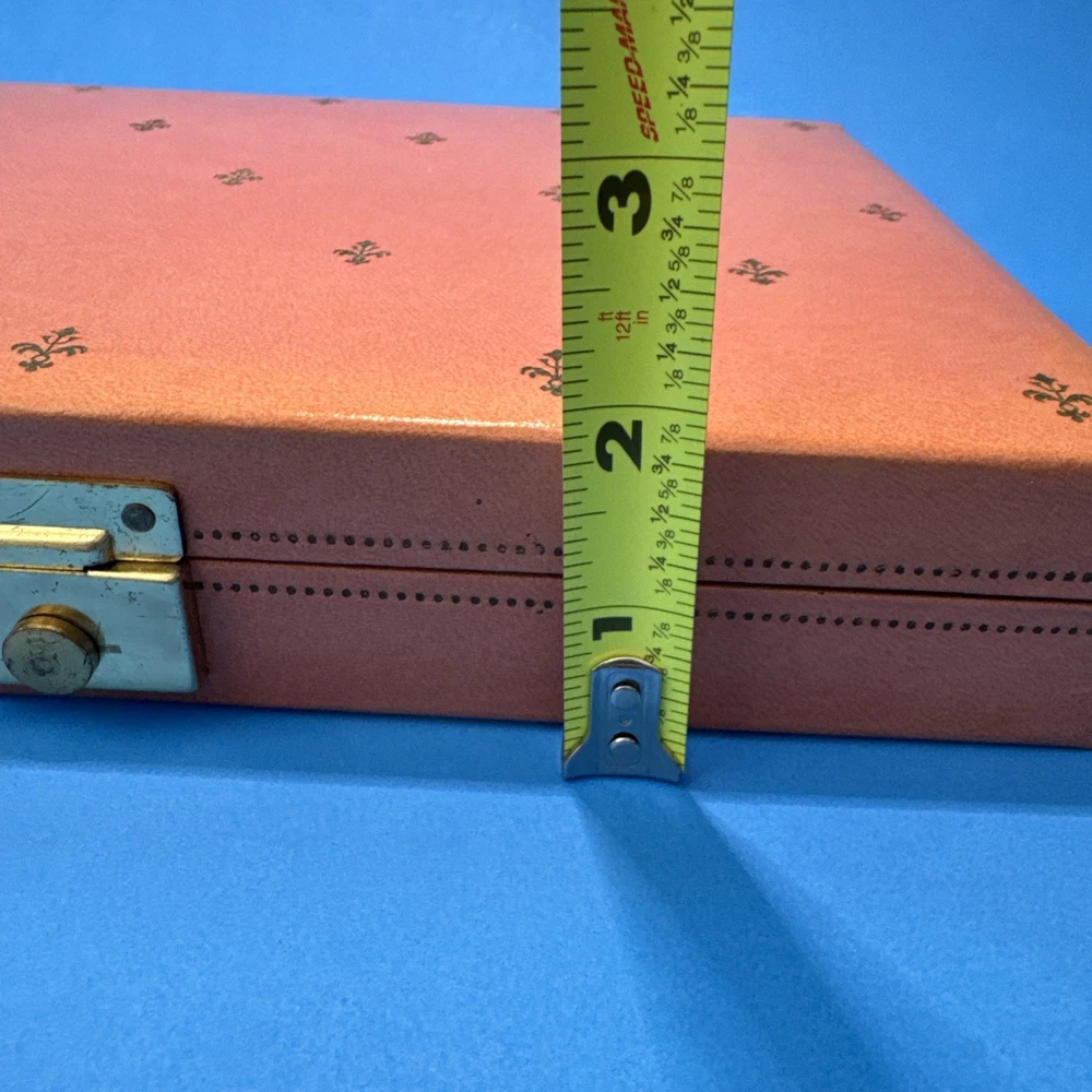 This vintage jewelry box by Mele is a stunning addition to any collection. The pink velvet exterior is beautifully designed with a bright fleur de lis pattern and a rectangular shape. The box is perfect for storing a variety of jewelry items, including necklaces, bracelets, anklets, rings, cufflinks, earrings, and body jewelry. The interior of the box is lined with soft velvet and includes several compartments to keep your jewelry organized. The box is also hinged, making it easy to access your items. Whether you're a collector or just looking for a stylish way to store your jewelry, this Mele vintage jewelry box is a must-have.
