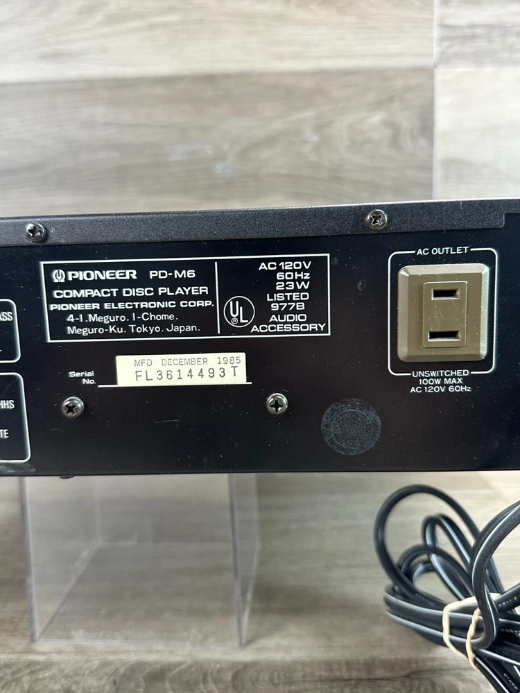 Vintage Pioneer PD-M6 CD Player With Six-Disc Cartridge Not Working Parts Only This vintage Pioneer PD-M6 CD player is a great addition to any collection, offering six-disc capacity and infrared connectivity. The sleek black design and audio outputs including headphone jack and stereo L/R RCA make it a versatile choice for any home audio setup. This item is being sold as parts only and is not in working condition. Product Details: Condition: Pre-Owned in Not Working Condition. Selling as for parts only. Device when power is pressed all you can hear is a clicking sound. (See Pictures for Reference and Size) Stored in a Non Smoking Home Shipping: I ship daily Monday thru Friday so expect a quick delivery Ships from California, USA Fast Shipping Contact us for any custom orders "All items pictured are included. Please take another look at pictures to view what you are purchasing." Thank you for checking out our listing. Please visit my eBay store to find harder to find, and unique items. To View More Items from our Store, Click our Direct Link to our eBay Store Below: ENJ ECommerce eBay Store