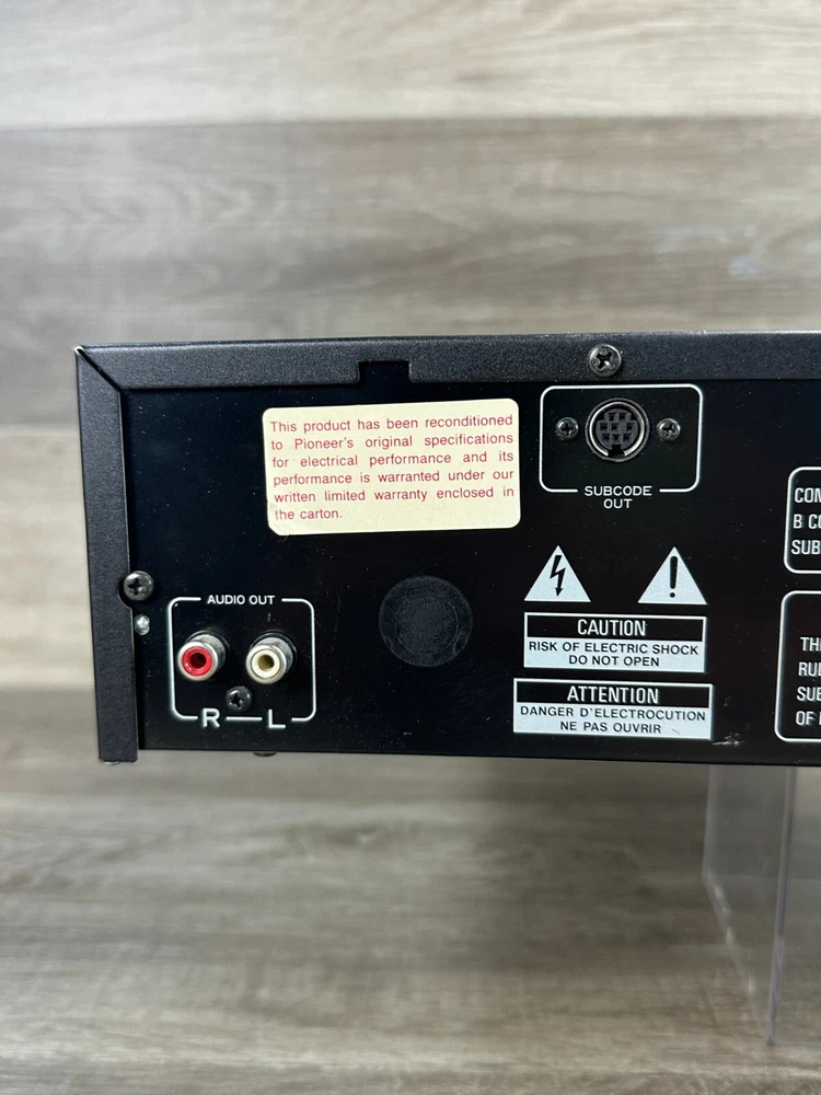 Color: Black Connectivity: Infrared Type: CD Player Features: CD Changer Model: Pioneer PD-m6 CD Changer Capacity: 6 Brand: Pioneer Audio Outputs: Headphone Jack, Stereo L/R RCA Playable Media Format: CD