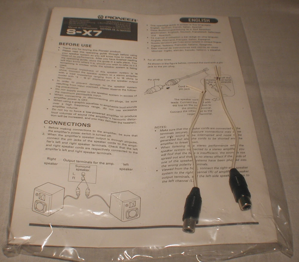 Selling a pair of vintage Pioneer S-X7 Bookshelf Surround Speakers in their original found new old stock condition . Rare Estate Find. The estate was filled with high quality electronics and unique collectibles. The speakers have never been used and in mint condition. Includes manual and wire connectors. What you see in the pictures is exactly what you will receive. I did not clean or polish but already look new. See pictures for details and condition. Check my other listings for many unique hard to find collectibles. Sh ipping Terms: Insurance and tracking are provided. Free Local Pickup. The speakers will be double boxed and safely packaged for shipping. Contact me with any questions or comments. Seller Terms: Buyer must contact seller within 2 days and payment should be received otherwise the seller may either sell or relist the item. Any payment not received within 3 days of the end of the auction may result in the notification to Ebay under their non-paying bidder policy.