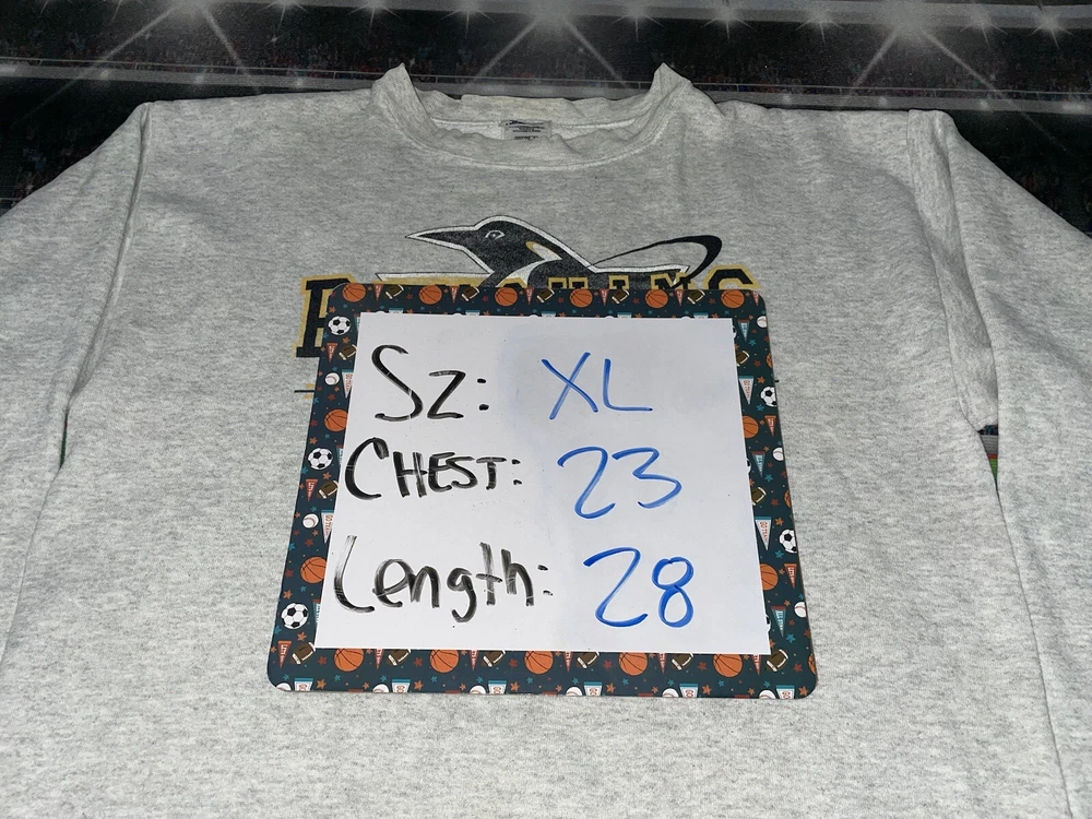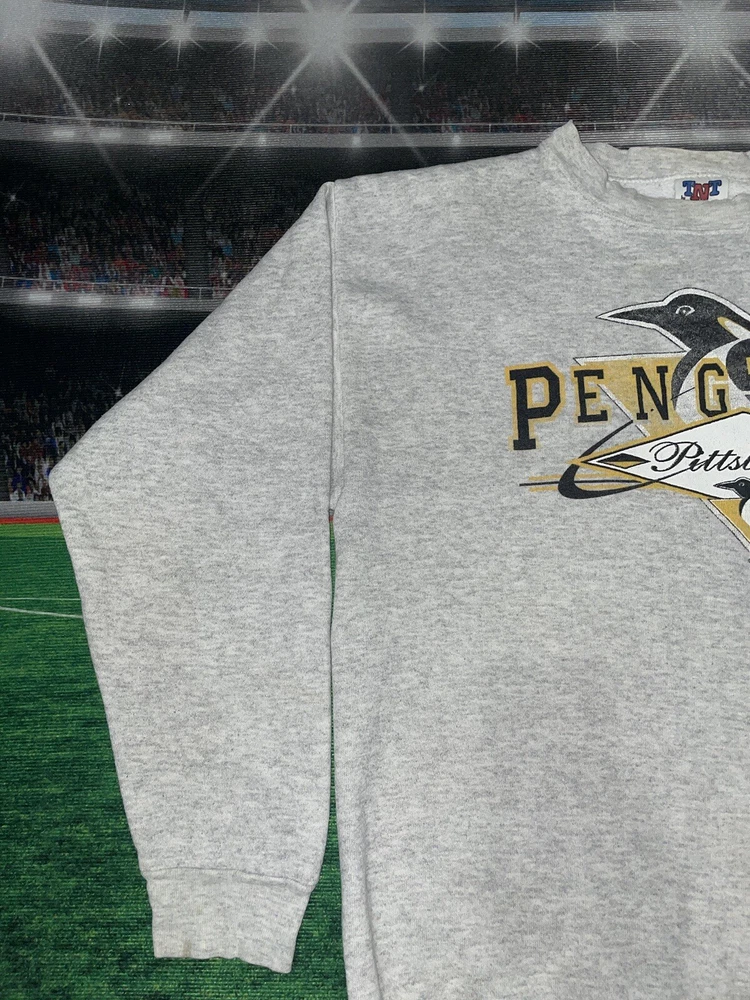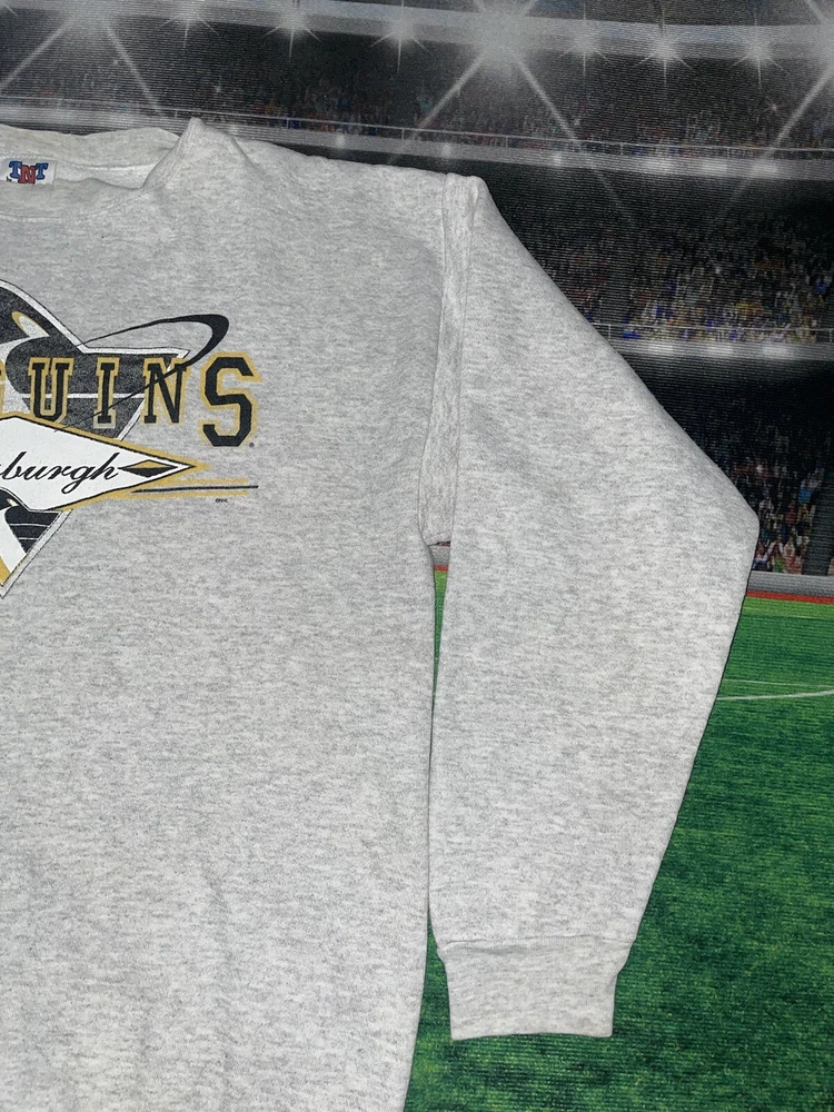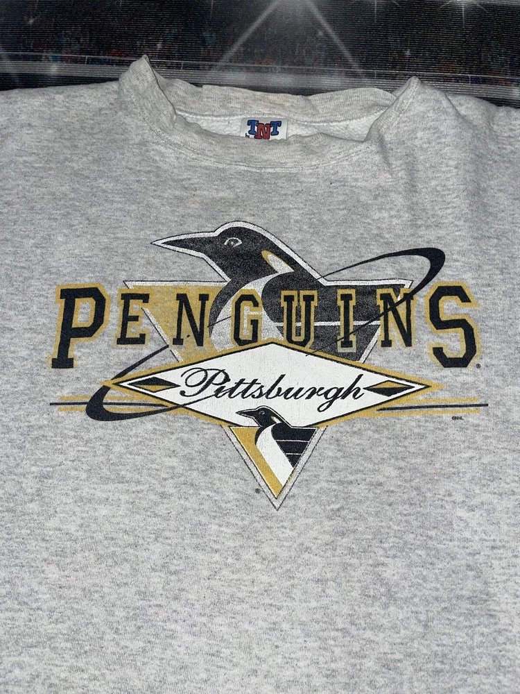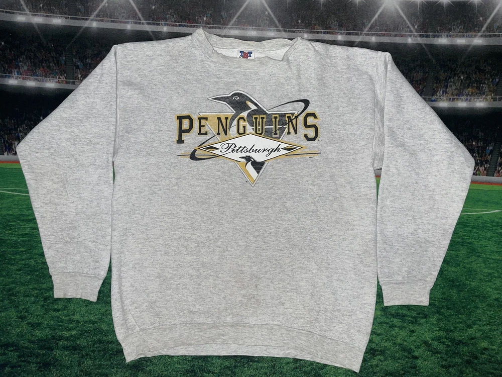 We try our best to fit the best description possible , condition and pictures please fill free for any questions or concerns thanks Note: has some wear on the neck and spots Show your support for the Pittsburgh Penguins with this vintage sweatshirt. Made for unisex adult fans, this gray crewneck is perfect for regular season games. The sweatshirt features the team's logo prominently on the chest, making it a great addition to any fan's wardrobe. This NHL licensed apparel is available in size XL and is perfect for any hockey enthusiast. Use it to cheer on your favorite team or as a casual outfit for everyday wear. Get your hands on this unique piece of fan memorabilia today!