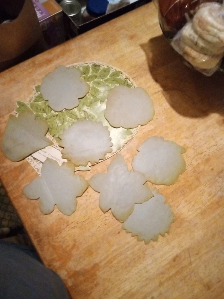 Vintage Plastic Leaf Drink Tumbler Coasters 8 ON DISPLAY CARD