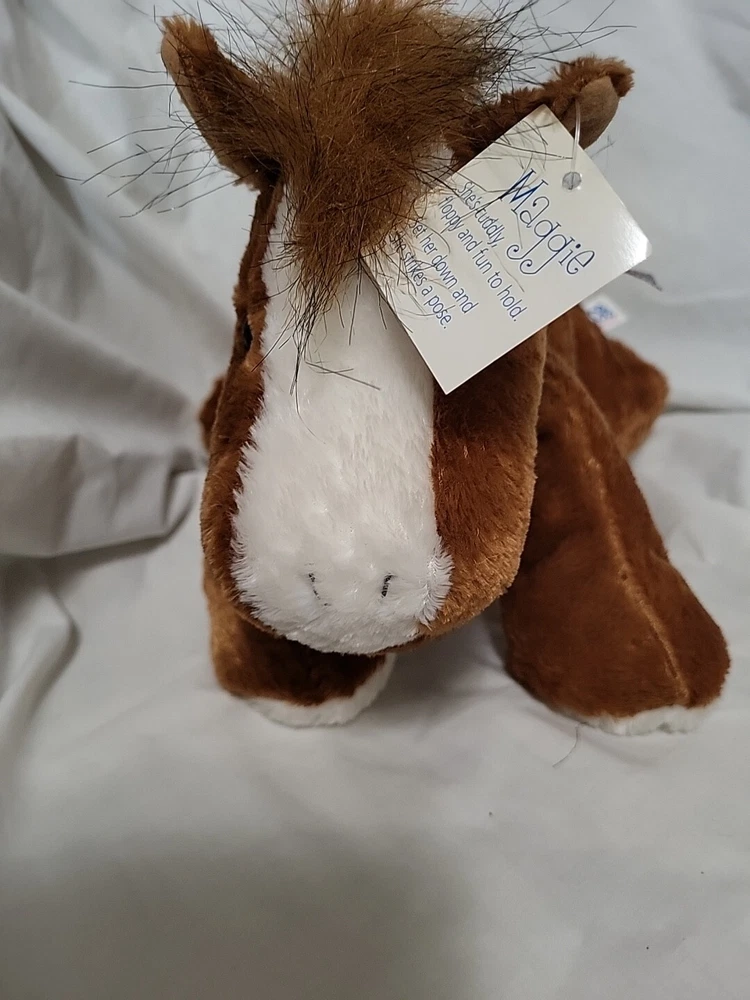 The Vintage Plush Horse by Mary Meyer is a delightful stuffed animal from 1999. With a floppy design and soft brown color, this toy is perfect for play and cuddling. Its high-quality construction by Mary Meyer ensures durability and charm, making it a timeless and beloved addition to any collection. New with tags.