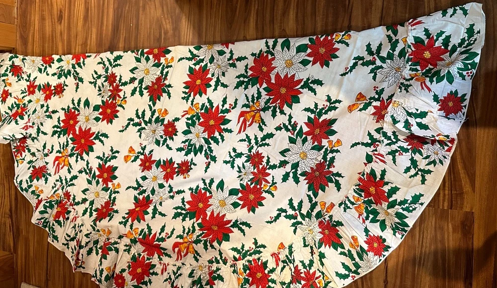 Shape:RoundNumber of Items in Set:1Material:CottonTheme:Flowers & Plants, SeasonalType:TableclothAntique:NoItem Diameter:71-110 inOccasion:ChristmasDepartment:Adult, UnisexPattern:PoinsettiaBrand:UnbrandedColor:MulticolorOriginal/Licensed Reproduction:OriginalSize:LCare Instructions:Machine Washable up to 85°F