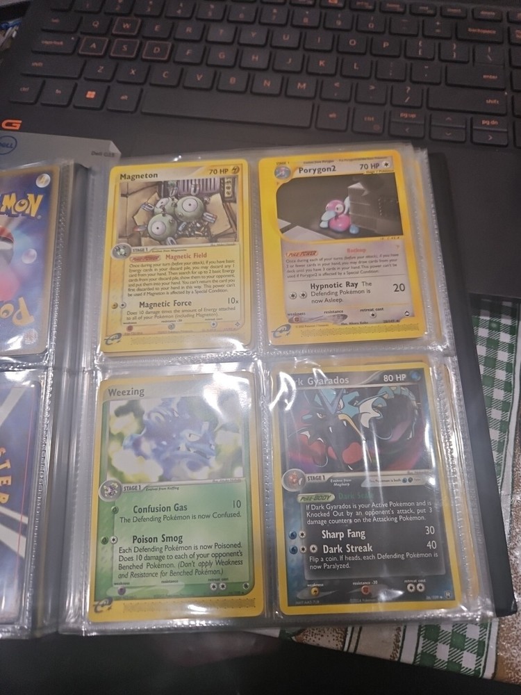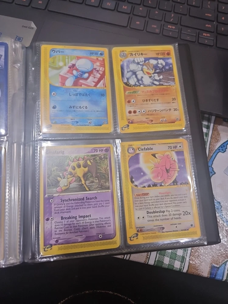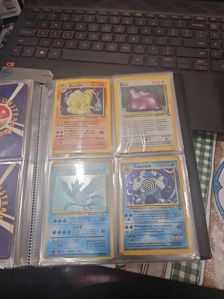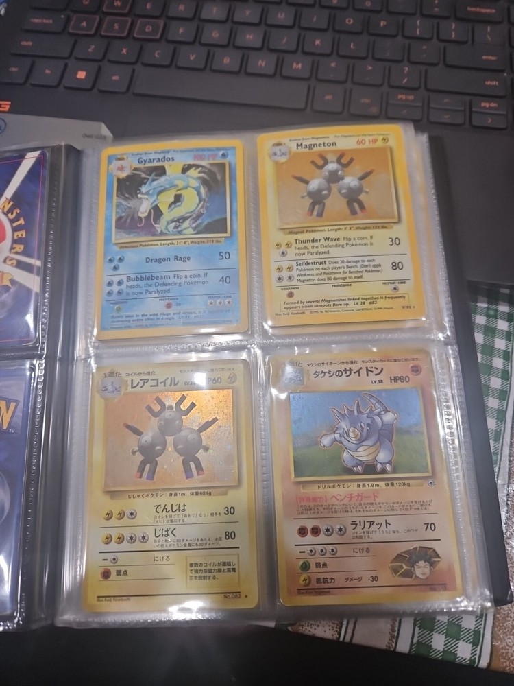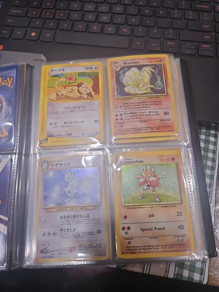 Vintage Pokemon Binder featuring a collection, from various sets including Base Set, Team Rocket, and Gym Heroes. The cards showcase a range of attributes such as Water, Wind, Fighting, Darkness, and more. The binder includes holographic cards (Holo's) featuring popular characters like Mewtwo, Kingdra, Gyarados, and Venusaur. This collector's item is from 1999 and manufactured by Wizards of the Coast, making it a nostalgic addition to any Pokemon TCG collection. Cards condition ranges some are in light played to heavily played. The Charizard is probably one of the better condition same with Dark Blastoise. I will also throw in a suprise psa graded card. On Feb-17-25 at 19:47:44 PST, seller added the following information: Vintage Pokemon Binder featuring a collection, from various sets including Base Set, Team Rocket, and Gym Heroes. The cards showcase a range of attributes such as Water, Wind, Fighting, Darkness, and more. The binder includes holographic cards (Holo's) featuring popular characters like Mewtwo, Kingdra, Gyarados, and Venusaur. This collector's item is from 1999 and manufactured by Wizards of the Coast, making it a nostalgic addition to any Pokemon TCG collection. Cards condition ranges some are in LIGHT PLAYED to HEAVILY PLAYED. The Charizard is probably one of the better condition same with Dark Blastoise.
