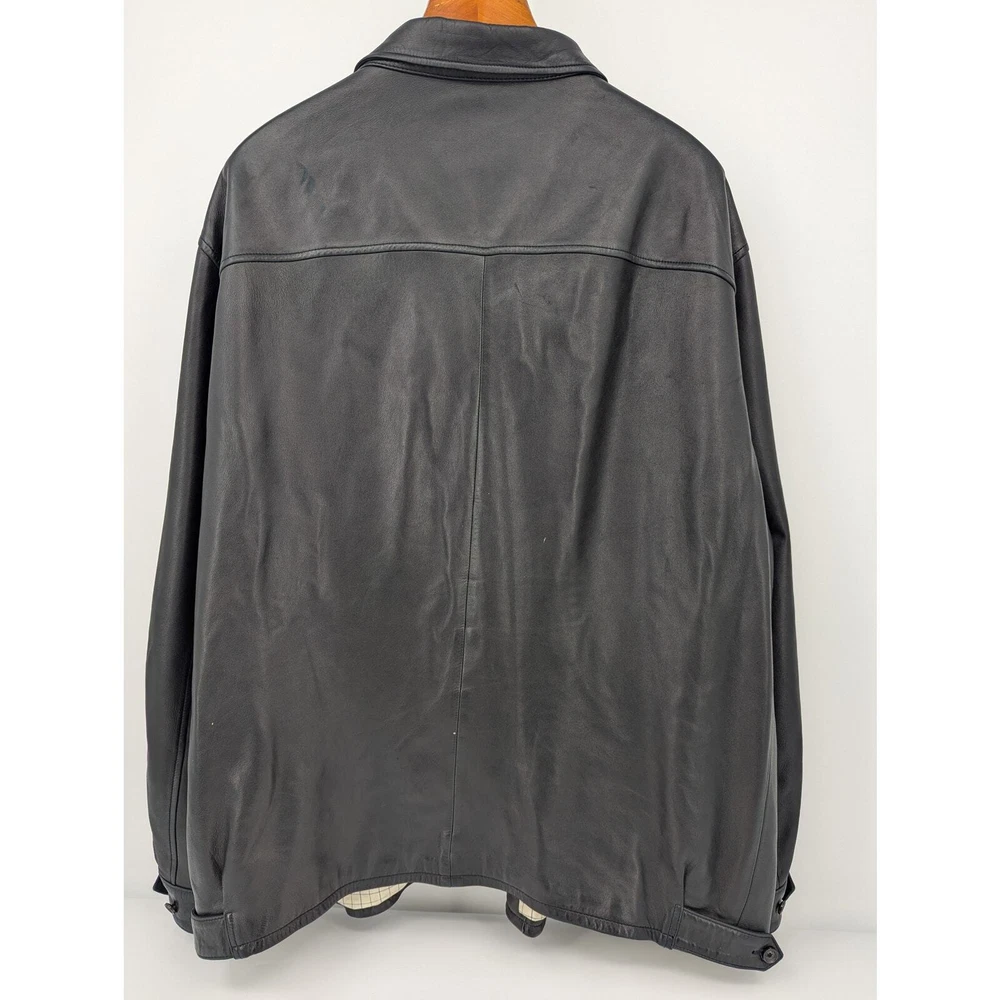 Vintage Polo Ralph Lauren leather jacket Full-zip closure 100% Genuine leather shell with 100% Cotton lining Men's 3XL Tall (see measurements below) Ships in box to preserve condition Approximate Measurements Length: 33 inches Chest Width: 31 inches Sleeve: 28 inches Zipper pull tab is broken, but zipper is still fully functional Very minor wear on back Is as pictured Smoke-free home Questions? Please ask SKU-CB431