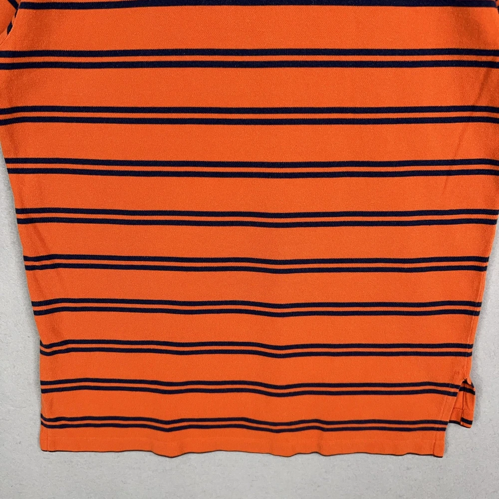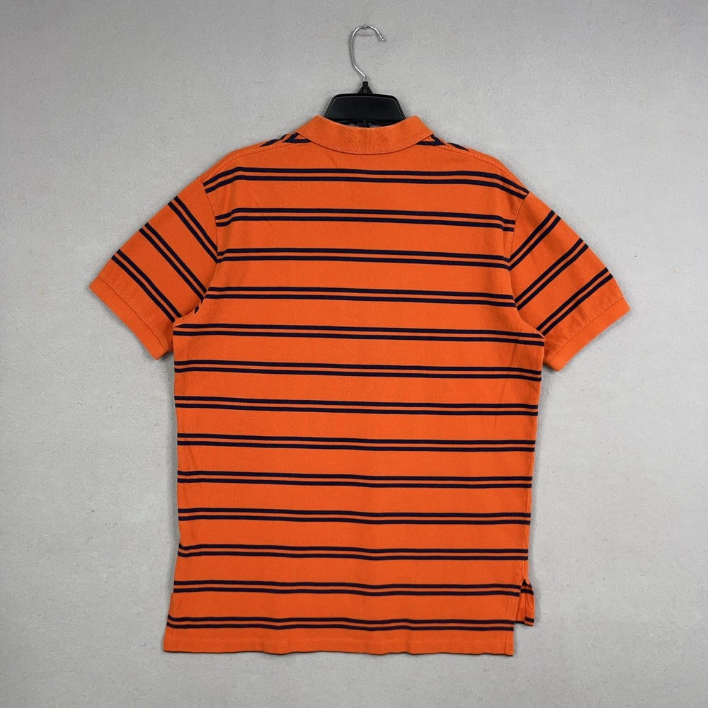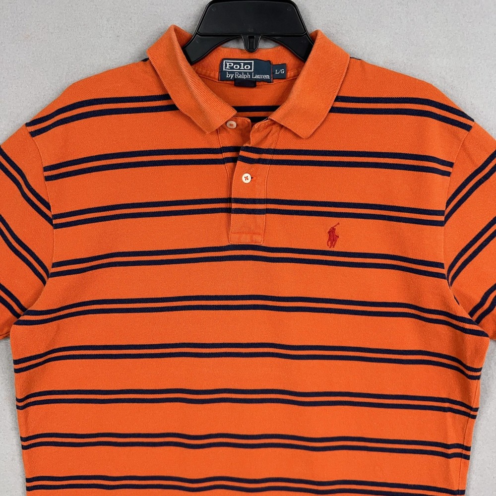 Vintage Polo Ralph Lauren Shirt Men Large Orange Striped Classic Preppy Golf Condition: Good pre-owned condition, light overall wear but no visible stains, holes, or major flaws Classic two-button polo collar design Signature Ralph Lauren embroidered pony logo on left chest Vibrant orange with navy blue horizontal stripes throughout 100% cotton for soft feel and comfort Tag size: Large (Mens) Perfect casual staple for golf, weekend outings, or relaxed business casual Measurements: - Previous washings may change the sizing written on the tag. - Please refer to the photos above for all measurements. - Please compare our measurements to that of one of your favorite garments. - Please note, item measurements are approximate . All items are bagged and sealed after being photographed, then stored in a smoke free environment to ensure the item is exactly the same as when photographed. All items have been cleaned per eBay standards & policies I carefully package and ship daily. Feel free to contact me with any questions.