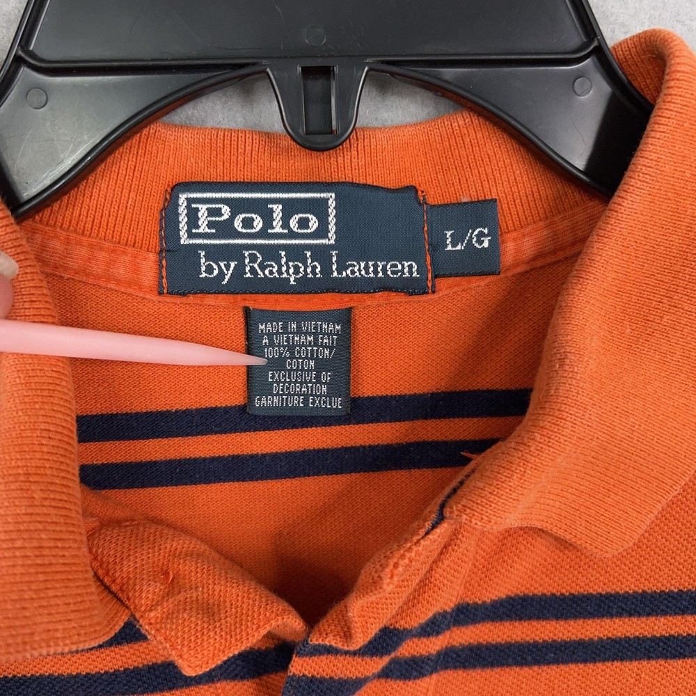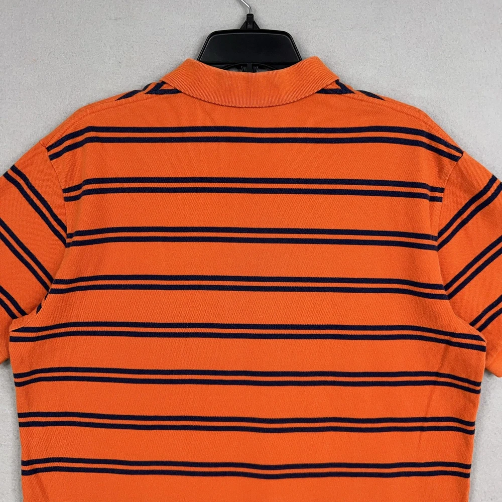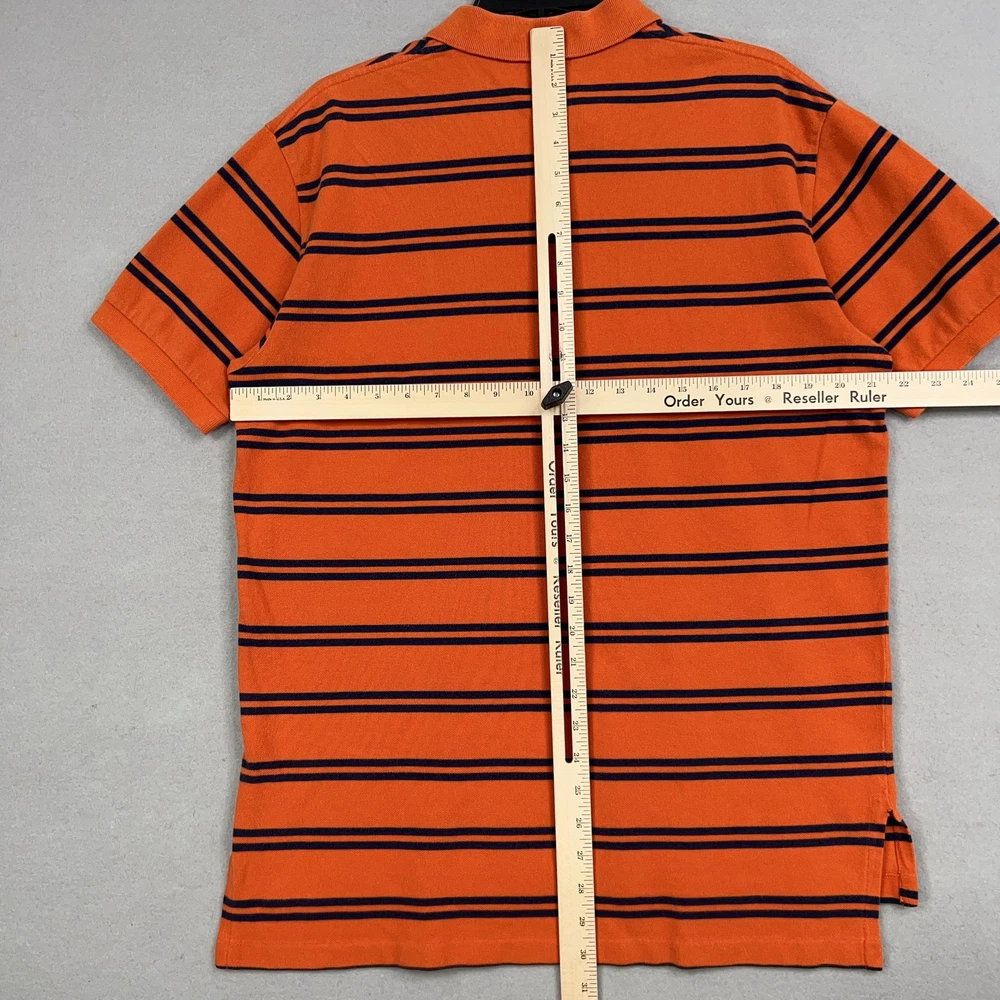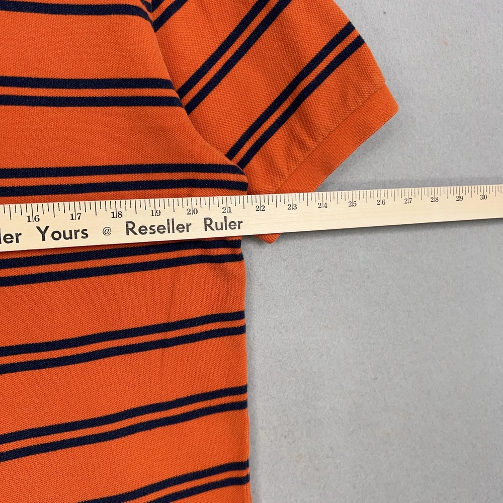 Vintage Polo Ralph Lauren Shirt Men Large Orange Striped Classic Preppy Golf Condition: Good pre-owned condition, light overall wear but no visible stains, holes, or major flaws Classic two-button polo collar design Signature Ralph Lauren embroidered pony logo on left chest Vibrant orange with navy blue horizontal stripes throughout 100% cotton for soft feel and comfort Tag size: Large (Mens) Perfect casual staple for golf, weekend outings, or relaxed business casual Measurements: - Previous washings may change the sizing written on the tag. - Please refer to the photos above for all measurements. - Please compare our measurements to that of one of your favorite garments. - Please note, item measurements are approximate . All items are bagged and sealed after being photographed, then stored in a smoke free environment to ensure the item is exactly the same as when photographed. All items have been cleaned per eBay standards & policies I carefully package and ship daily. Feel free to contact me with any questions.