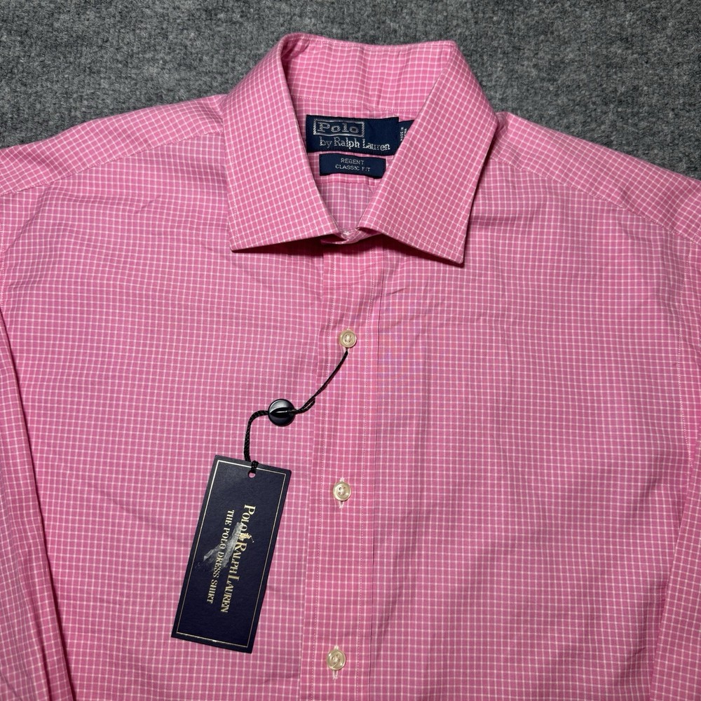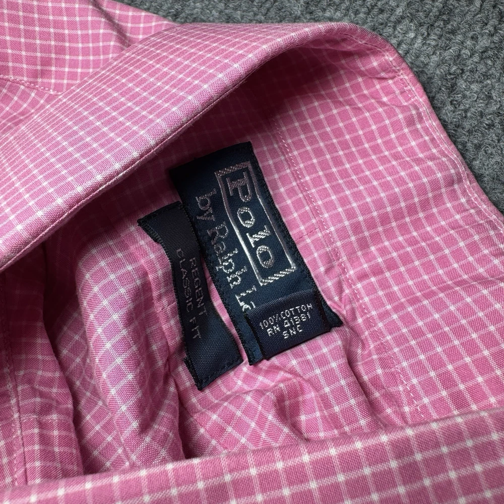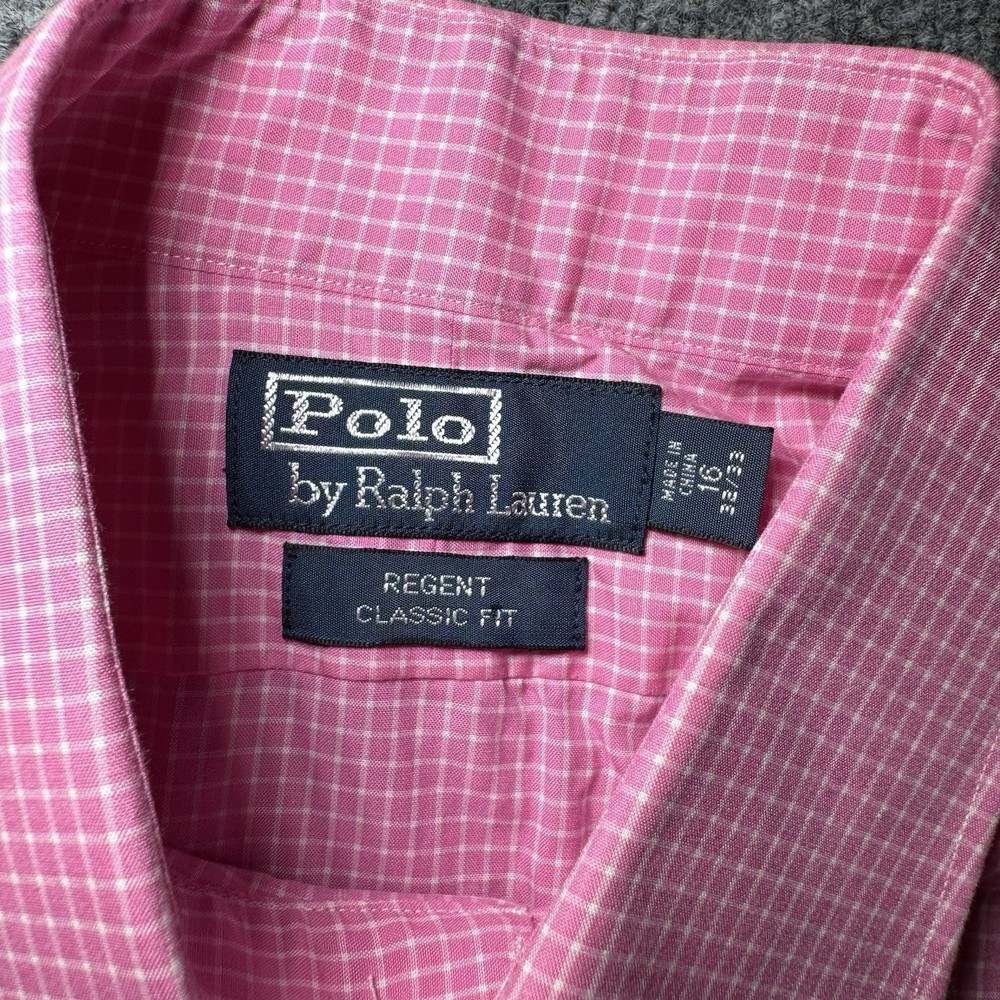 Vintage Polo Ralph Lauren Shirt Mens 16 32/33 Pink Check Button Up Regent NW Shirt is in excellent condition as shown in pictures, size is also shown in pictures. Feel free to ask any questions about this item, all of our items come from a smoke free environment.