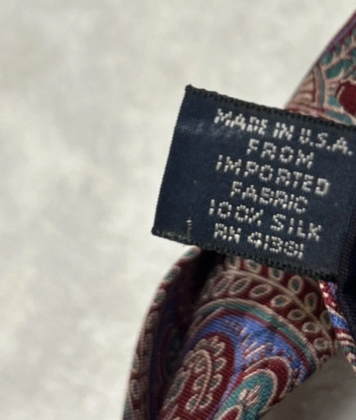 Country of Origin:United StatesCharacter:PonyHandmade:YesPattern:PaisleyFabric Type:SilkSize:One SizeColor:MulticolorNumber of Pieces:1 PieceType:TieItem Width:WideDepartment:MenItem Length:Classic (57"-60")Brand:Polo Ralph LaurenMaterial:SilkAccents:Logo, Embroidered