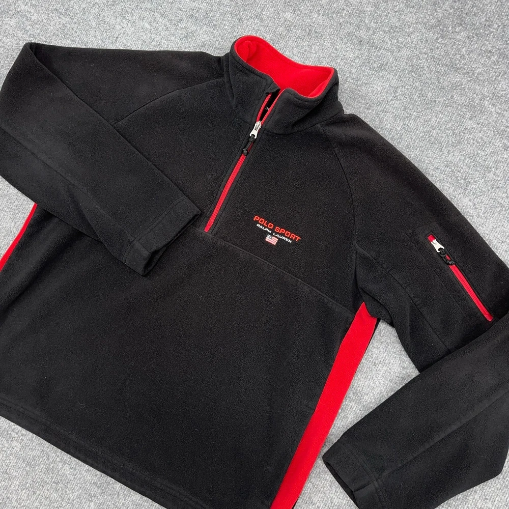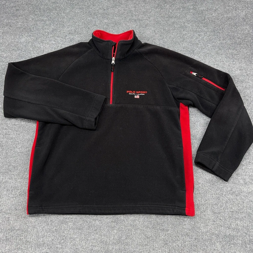 Vintage Polo Sport Ralph Lauren Jacket Mens L Black Fleece 1/4 Zip Pullover Flag In good condition. Please see photos for measurements.