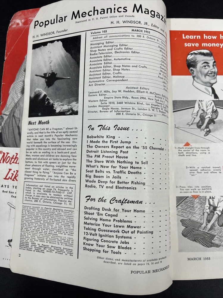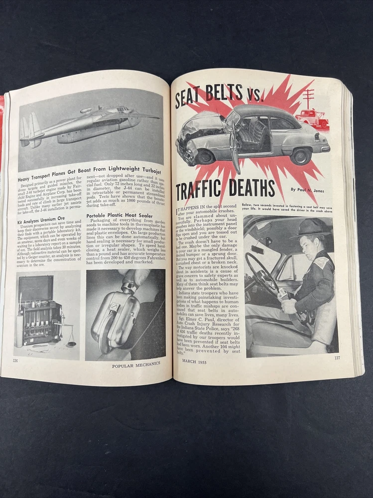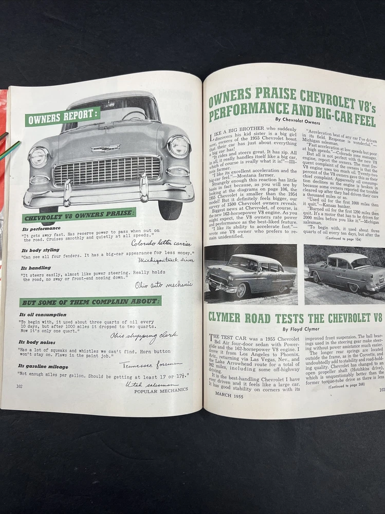 Vintage Popular Mechanics Magazine 1955 March, Chevrolet V8 Review Back Issue