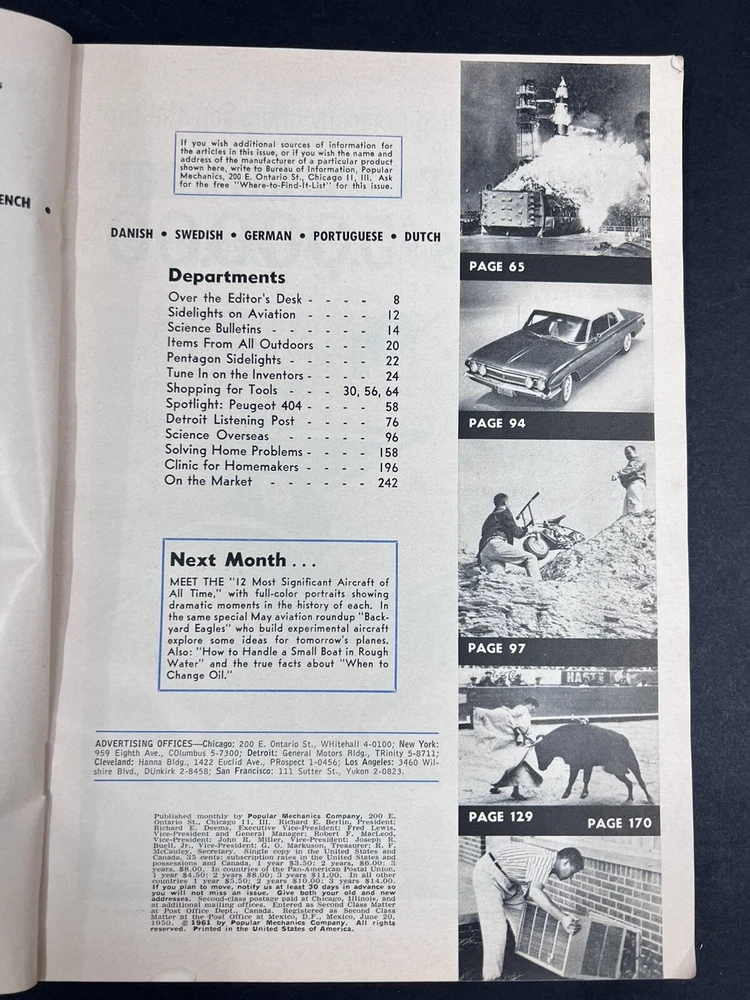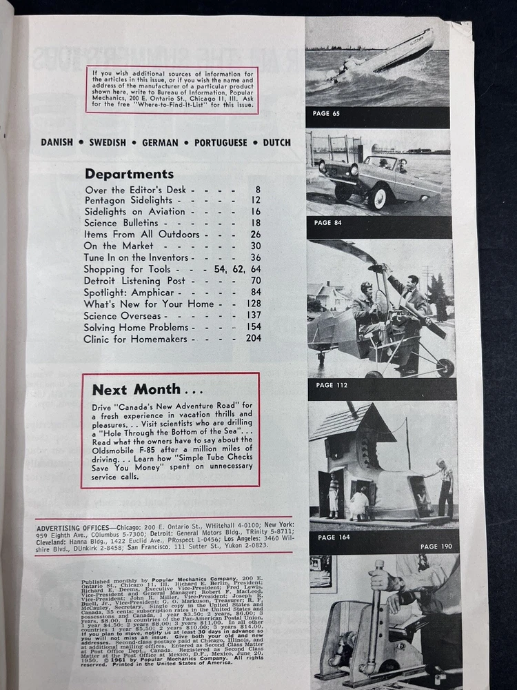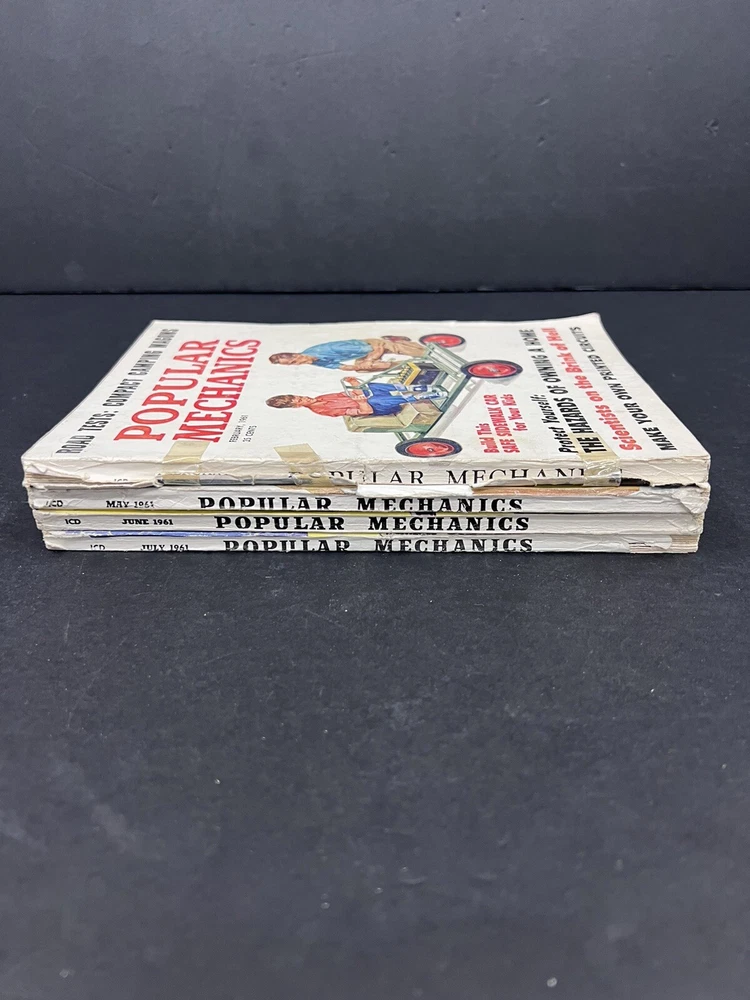 This vintage Popular Mechanics magazine lot from 1961 includes issues from February, May, June, and July. Each issue is packed with fascinating articles and illustrations that cover a variety of topics. You'll find articles on everything from the latest advancements in technology to historical pieces on various industries and topics. These magazines are a great addition to any collection, and they're sure to provide hours of entertainment and education. Whether you're a history buff, a technology enthusiast, or just someone who enjoys a good read, this vintage Popular Mechanics lot is a must-have.
