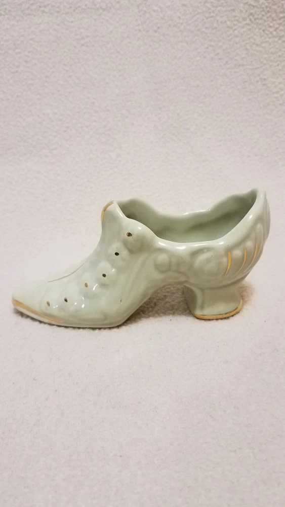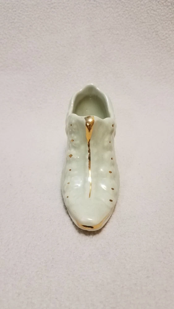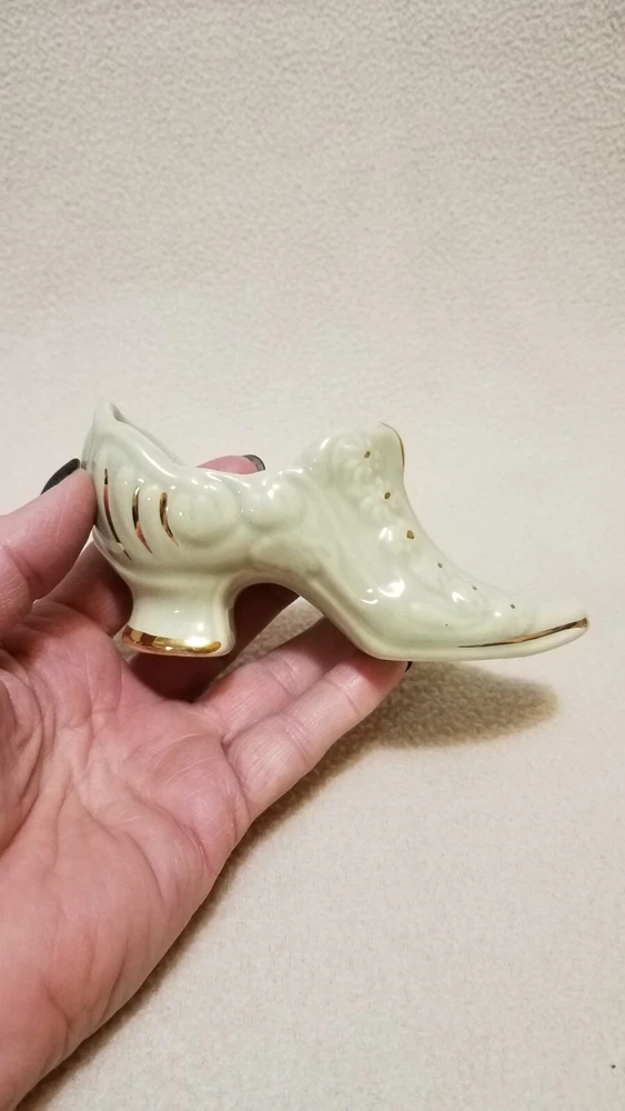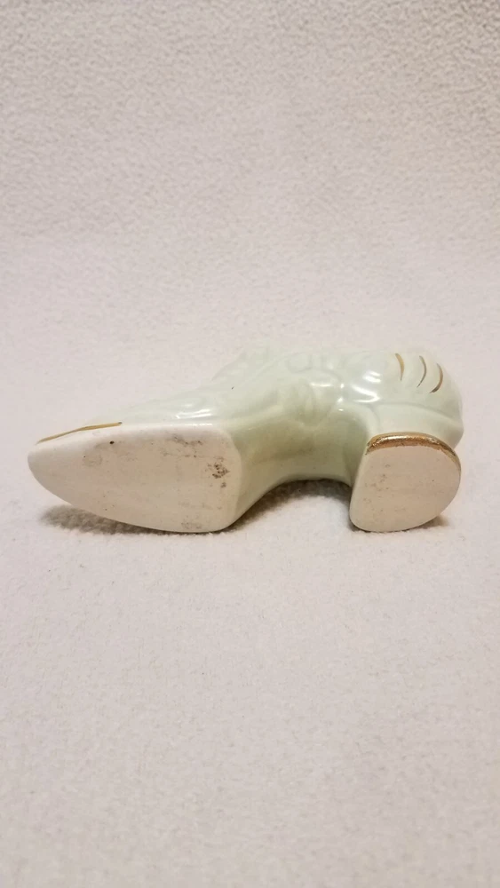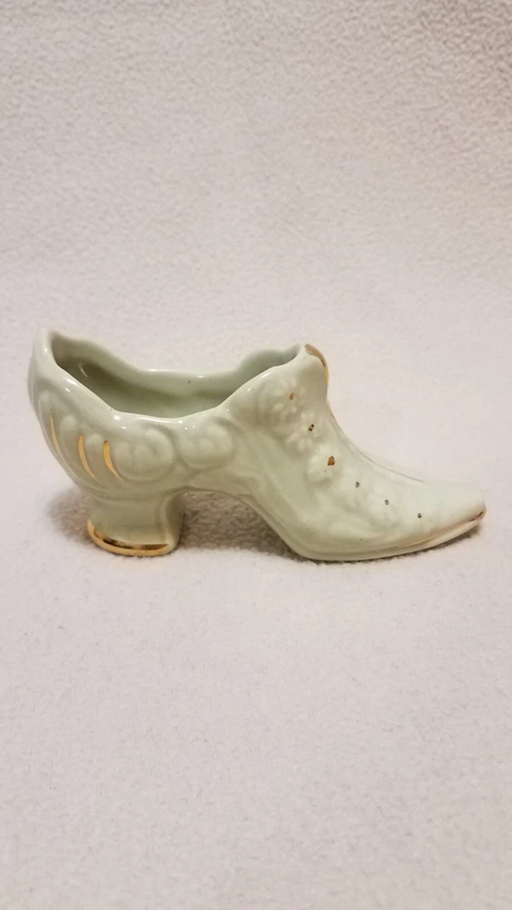 Here is a vintage, porcelain, miniature, Victorian style, shoe. It is 5" long and 2.25" at the tallest point. It is in good condition. I will only ship within the USA. 111424