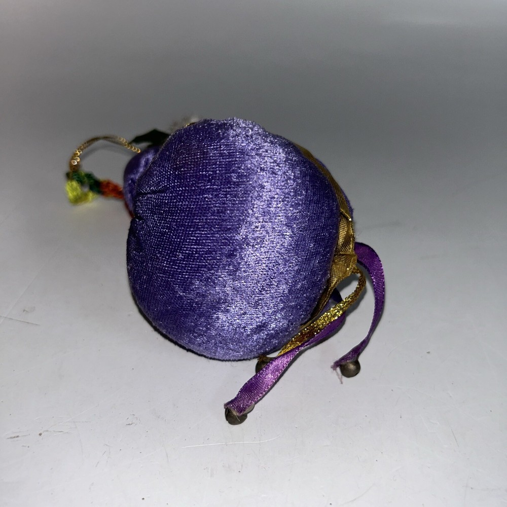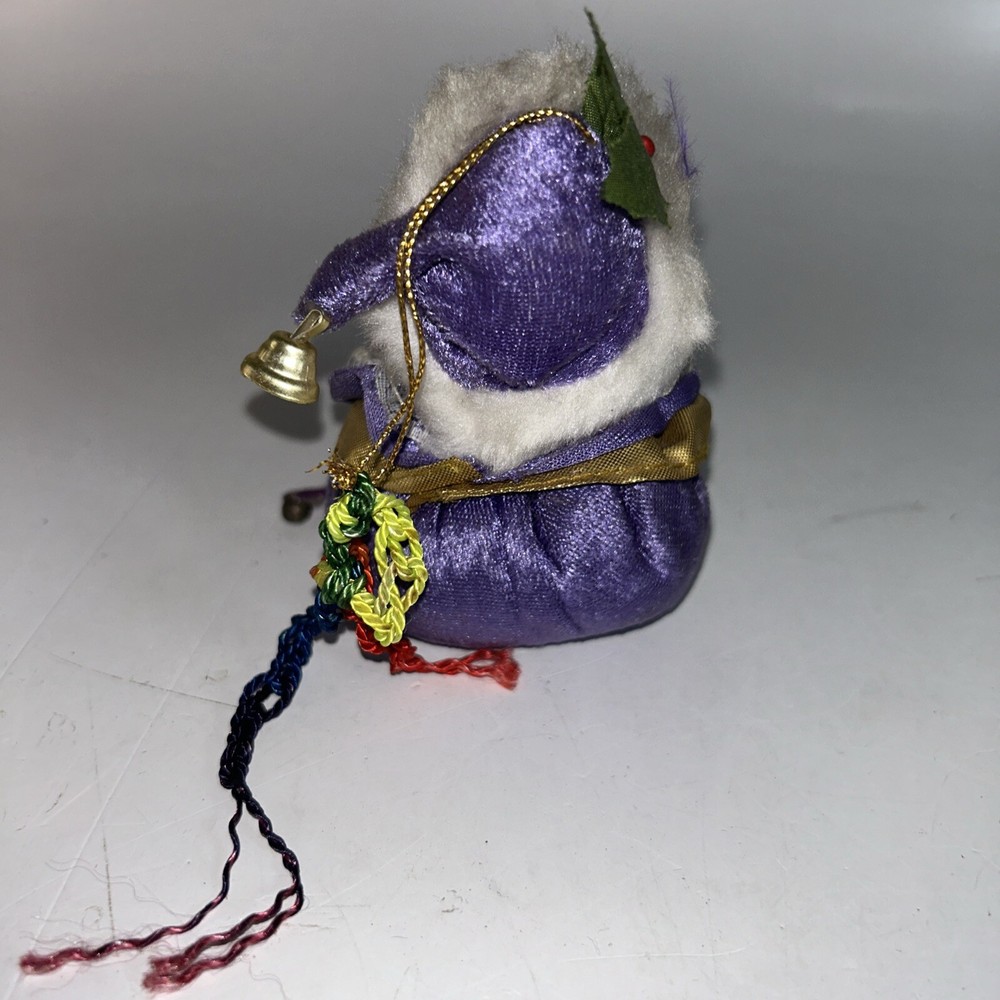 Year Manufactured:1995Character:SantaAntique:NoTheme:ChristmasShape:RoundColor:PurpleFranchise:VintageProduction Technique:PotteryDepartment:AdultType:OrnamentItem Height:4.5 inProduction Style:Art PotterySize:MediumSubject:SantaPattern:roundOccasion:ChristmasVintage:YesStyle:VintagePersonalize:NoOriginal/Licensed Reproduction:OriginalSet Includes:OrnamentItem Width:3 inMaterial:Porcelain, Velvet, RibbonTime Period Manufactured:1990-1999gtin13:Does not applyBrand:UnbrandedMPN:Santa OrnamentItem Weight:4 ozFeatures:VintageNumber of Items:1Country/Region of Manufacture:UnknownUPC:Does not applyItem Length:3 in diaHandmade:NoCollection:Santa Ornaments