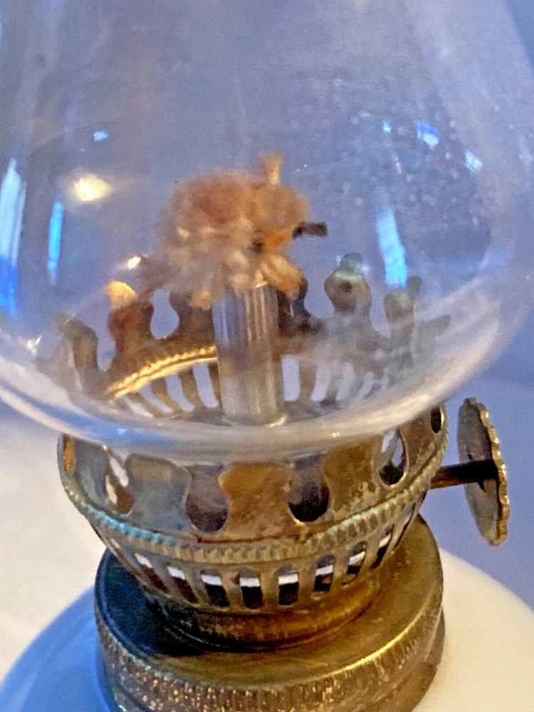 Vintage Porcelain "Tiny Talk" Mini Oil Lamp, Mouse Lovers, 7" Made In Japan